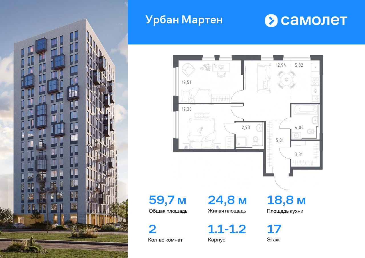 Строим кварталы для жизни с заботой о будущем. Предлагается 2-комнатная квартира комфорт-класса 59,93 кв.м в корпусе 1.1-1.2 на 17 этаже, в ЖК «Урбан Мартен» Квартира с предчистовой отделкой. Доступность дополнительных опций уточняйте у застройщика. Приобрести квартиру возможно по специальным акциям от застройщика, с текущими условиями акций можно ознакомиться в блоке «Акций». Цена динамическая и может отличаться, уточняйте актуальность у застройщика. В жилом комплексе «Урбан Мартен» у вас будет собственная Уфа: домашняя, неторопливая, теплая. Здесь дети будут играть во дворе без машин в догонялки, собака сможет бегать за палкой по пляжу, а с соседями получится встречаться не только у лифта, но и на утренних занятиях йогой на зеленой лужайке рядом с домом. Жилой комплекс «Урбан Мартен» находится в Демском районе — самом тихом и зеленом в Уфе. Здесь можно открывать окна нараспашку, чтобы квартира наполнялась свежим воздухом, и наблюдать с балкона, как покачиваются макушки деревьев. #yan19-2r1758369#О застройщике
