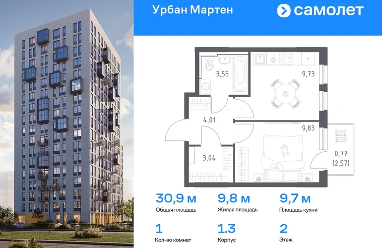 Предлагается 1-комнатная квартира комфорт-класса 30,93 кв.м в корпусе 1.3 на 2 этаже, в ЖК «Урбан Мартен» Квартира с предчистовой отделкой. Доступность дополнительных опций уточняйте у застройщика. Приобрести квартиру возможно по специальным акциям от застройщика, с текущими условиями акций можно ознакомиться в блоке “Акций”. Цена динамическая и может отличаться, уточняйте актуальность у застройщика. В жилом комплексе «Урбан Мартен» у вас будет собственная Уфа: домашняя, неторопливая, теплая. Здесь дети будут играть во дворе без машин в догонялки, собака сможет бегать за палкой по пляжу, а с соседями получится встречаться не только у лифта, но и на утренних занятиях йогой на зеленой лужайке рядом с домом. Жилой комплекс «Урбан Мартен» находится в Демском районе — самом тихом и зеленом в Уфе. Здесь можно открывать окна нараспашку, чтобы квартира наполнялась свежим воздухом, и наблюдать с балкона, как покачиваются макушки деревьев. #yan19-2r1758376#О застройщике