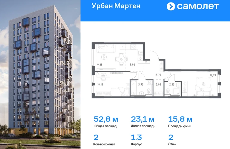 Предлагается 2-комнатная квартира комфорт-класса 52,77 кв.м в корпусе 1.3 на 2 этаже, в ЖК «Урбан Мартен» Квартира с предчистовой отделкой. Доступность дополнительных опций уточняйте у застройщика. Приобрести квартиру возможно по специальным акциям от застройщика, с текущими условиями акций можно ознакомиться в блоке “Акций”. Цена динамическая и может отличаться, уточняйте актуальность у застройщика. В жилом комплексе «Урбан Мартен» у вас будет собственная Уфа: домашняя, неторопливая, теплая. Здесь дети будут играть во дворе без машин в догонялки, собака сможет бегать за палкой по пляжу, а с соседями получится встречаться не только у лифта, но и на утренних занятиях йогой на зеленой лужайке рядом с домом. Жилой комплекс «Урбан Мартен» находится в Демском районе — самом тихом и зеленом в Уфе. Здесь можно открывать окна нараспашку, чтобы квартира наполнялась свежим воздухом, и наблюдать с балкона, как покачиваются макушки деревьев. #yan19-2r1758383#О застройщике
