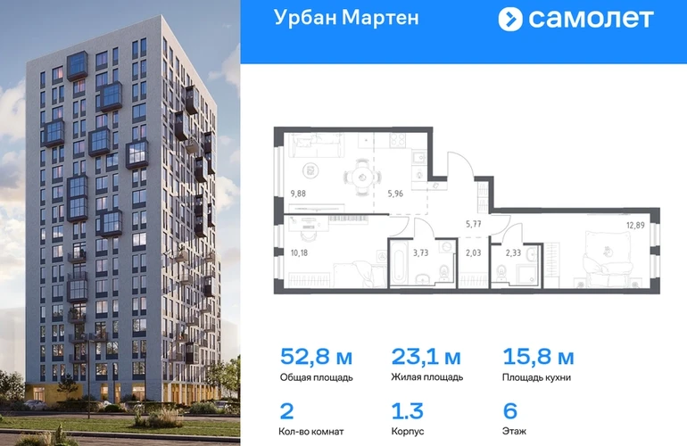 Предлагается 2-комнатная квартира комфорт-класса 52,77 кв.м в корпусе 1.3 на 6 этаже, в ЖК «Урбан Мартен» Квартира с предчистовой отделкой. Доступность дополнительных опций уточняйте у застройщика. Приобрести квартиру возможно по специальным акциям от застройщика, с текущими условиями акций можно ознакомиться в блоке “Акций”. Цена динамическая и может отличаться, уточняйте актуальность у застройщика. В жилом комплексе «Урбан Мартен» у вас будет собственная Уфа: домашняя, неторопливая, теплая. Здесь дети будут играть во дворе без машин в догонялки, собака сможет бегать за палкой по пляжу, а с соседями получится встречаться не только у лифта, но и на утренних занятиях йогой на зеленой лужайке рядом с домом. Жилой комплекс «Урбан Мартен» находится в Демском районе — самом тихом и зеленом в Уфе. Здесь можно открывать окна нараспашку, чтобы квартира наполнялась свежим воздухом, и наблюдать с балкона, как покачиваются макушки деревьев. #yan19-2r1758386#О застройщике