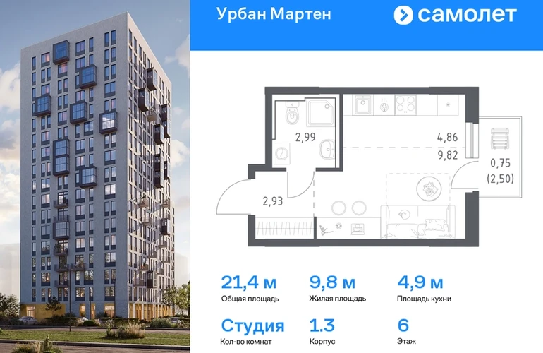 Предлагается квартира студия комфорт-класса 21,35 кв.м в корпусе 1.3 на 6 этаже, в ЖК «Урбан Мартен» Квартира с предчистовой отделкой. Доступность дополнительных опций уточняйте у застройщика. Приобрести квартиру возможно по специальным акциям от застройщика, с текущими условиями акций можно ознакомиться в блоке “Акций”. Цена динамическая и может отличаться, уточняйте актуальность у застройщика. В жилом комплексе «Урбан Мартен» у вас будет собственная Уфа: домашняя, неторопливая, теплая. Здесь дети будут играть во дворе без машин в догонялки, собака сможет бегать за палкой по пляжу, а с соседями получится встречаться не только у лифта, но и на утренних занятиях йогой на зеленой лужайке рядом с домом. Жилой комплекс «Урбан Мартен» находится в Демском районе — самом тихом и зеленом в Уфе. Здесь можно открывать окна нараспашку, чтобы квартира наполнялась свежим воздухом, и наблюдать с балкона, как покачиваются макушки деревьев. #yan19-2r1758399#О застройщике