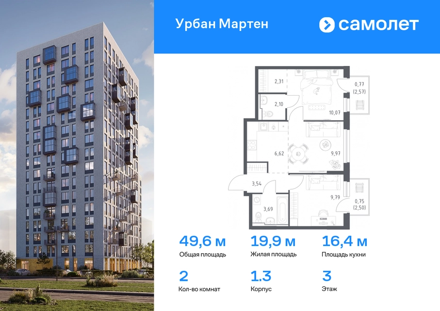 Предлагается 2-комнатная квартира комфорт-класса 49,61 кв.м в корпусе 1.3 на 3 этаже, в ЖК «Урбан Мартен» Квартира с предчистовой отделкой. Доступность дополнительных опций уточняйте у застройщика. Приобрести квартиру возможно по специальным акциям от застройщика, с текущими условиями акций можно ознакомиться в блоке “Акций”. Цена динамическая и может отличаться, уточняйте актуальность у застройщика. В жилом комплексе «Урбан Мартен» у вас будет собственная Уфа: домашняя, неторопливая, теплая. Здесь дети будут играть во дворе без машин в догонялки, собака сможет бегать за палкой по пляжу, а с соседями получится встречаться не только у лифта, но и на утренних занятиях йогой на зеленой лужайке рядом с домом. Жилой комплекс «Урбан Мартен» находится в Демском районе — самом тихом и зеленом в Уфе. Здесь можно открывать окна нараспашку, чтобы квартира наполнялась свежим воздухом, и наблюдать с балкона, как покачиваются макушки деревьев. #yan19-2r1758405#О застройщике