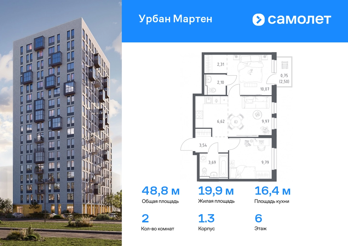 Предлагается 2-комнатная квартира комфорт-класса 48,84 кв.м в корпусе 1.3 на 6 этаже, в ЖК «Урбан Мартен» Квартира с предчистовой отделкой. Доступность дополнительных опций уточняйте у застройщика. Приобрести квартиру возможно по специальным акциям от застройщика, с текущими условиями акций можно ознакомиться в блоке “Акций”. Цена динамическая и может отличаться, уточняйте актуальность у застройщика. В жилом комплексе «Урбан Мартен» у вас будет собственная Уфа: домашняя, неторопливая, теплая. Здесь дети будут играть во дворе без машин в догонялки, собака сможет бегать за палкой по пляжу, а с соседями получится встречаться не только у лифта, но и на утренних занятиях йогой на зеленой лужайке рядом с домом. Жилой комплекс «Урбан Мартен» находится в Демском районе — самом тихом и зеленом в Уфе. Здесь можно открывать окна нараспашку, чтобы квартира наполнялась свежим воздухом, и наблюдать с балкона, как покачиваются макушки деревьев. #yan19-2r1758415#О застройщике