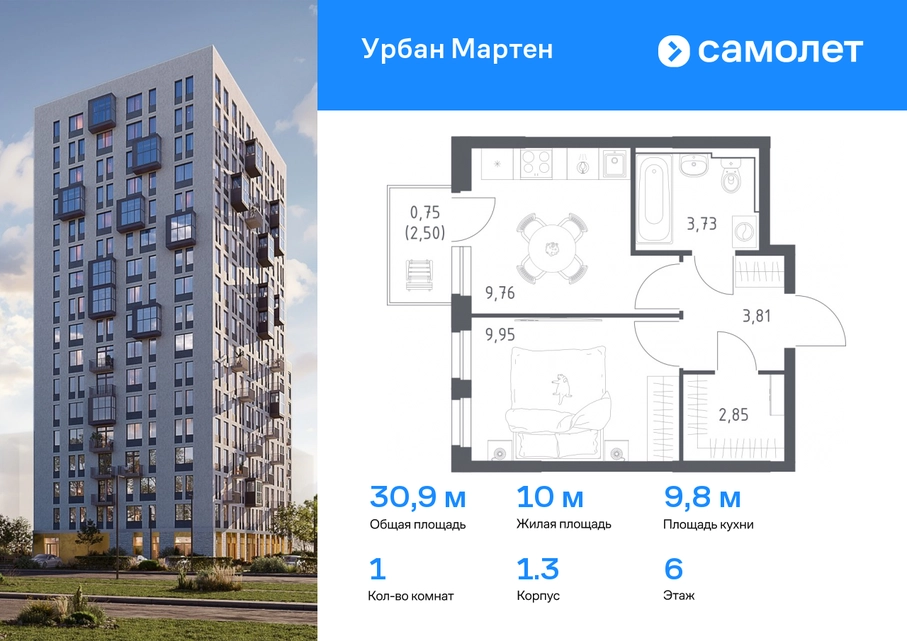 Предлагается 1-комнатная квартира комфорт-класса 30,85 кв.м в корпусе 1.3 на 6 этаже, в ЖК «Урбан Мартен» Квартира с предчистовой отделкой. Доступность дополнительных опций уточняйте у застройщика. Приобрести квартиру возможно по специальным акциям от застройщика, с текущими условиями акций можно ознакомиться в блоке “Акций”. Цена динамическая и может отличаться, уточняйте актуальность у застройщика. В жилом комплексе «Урбан Мартен» у вас будет собственная Уфа: домашняя, неторопливая, теплая. Здесь дети будут играть во дворе без машин в догонялки, собака сможет бегать за палкой по пляжу, а с соседями получится встречаться не только у лифта, но и на утренних занятиях йогой на зеленой лужайке рядом с домом. Жилой комплекс «Урбан Мартен» находится в Демском районе — самом тихом и зеленом в Уфе. Здесь можно открывать окна нараспашку, чтобы квартира наполнялась свежим воздухом, и наблюдать с балкона, как покачиваются макушки деревьев. #yan19-2r1758418#О застройщике