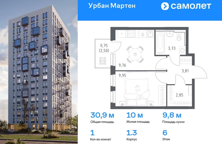 Предлагается 1-комнатная квартира комфорт-класса 30,85 кв.м в корпусе 1.3 на 6 этаже, в ЖК «Урбан Мартен» Квартира с предчистовой отделкой. Доступность дополнительных опций уточняйте у застройщика. Приобрести квартиру возможно по специальным акциям от застройщика, с текущими условиями акций можно ознакомиться в блоке “Акций”. Цена динамическая и может отличаться, уточняйте актуальность у застройщика. В жилом комплексе «Урбан Мартен» у вас будет собственная Уфа: домашняя, неторопливая, теплая. Здесь дети будут играть во дворе без машин в догонялки, собака сможет бегать за палкой по пляжу, а с соседями получится встречаться не только у лифта, но и на утренних занятиях йогой на зеленой лужайке рядом с домом. Жилой комплекс «Урбан Мартен» находится в Демском районе — самом тихом и зеленом в Уфе. Здесь можно открывать окна нараспашку, чтобы квартира наполнялась свежим воздухом, и наблюдать с балкона, как покачиваются макушки деревьев. #yan19-2r1758418#О застройщике