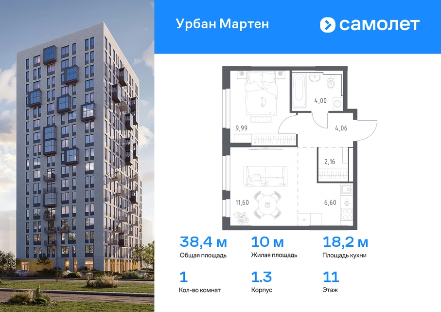 Предлагается 1-комнатная квартира комфорт-класса 38,41 кв.м в корпусе 1.3 на 11 этаже, в ЖК «Урбан Мартен» Квартира с предчистовой отделкой. Доступность дополнительных опций уточняйте у застройщика. Приобрести квартиру возможно по специальным акциям от застройщика, с текущими условиями акций можно ознакомиться в блоке «Акций». Цена динамическая и может отличаться, уточняйте актуальность у застройщика. В жилом комплексе «Урбан Мартен» у вас будет собственная Уфа: домашняя, неторопливая, теплая. Здесь дети будут играть во дворе без машин в догонялки, собака сможет бегать за палкой по пляжу, а с соседями получится встречаться не только у лифта, но и на утренних занятиях йогой на зеленой лужайке рядом с домом. Жилой комплекс «Урбан Мартен» находится в Демском районе — самом тихом и зеленом в Уфе. Здесь можно открывать окна нараспашку, чтобы квартира наполнялась свежим воздухом, и наблюдать с балкона, как покачиваются макушки деревьев. #yan19-2r1758433#О застройщике
