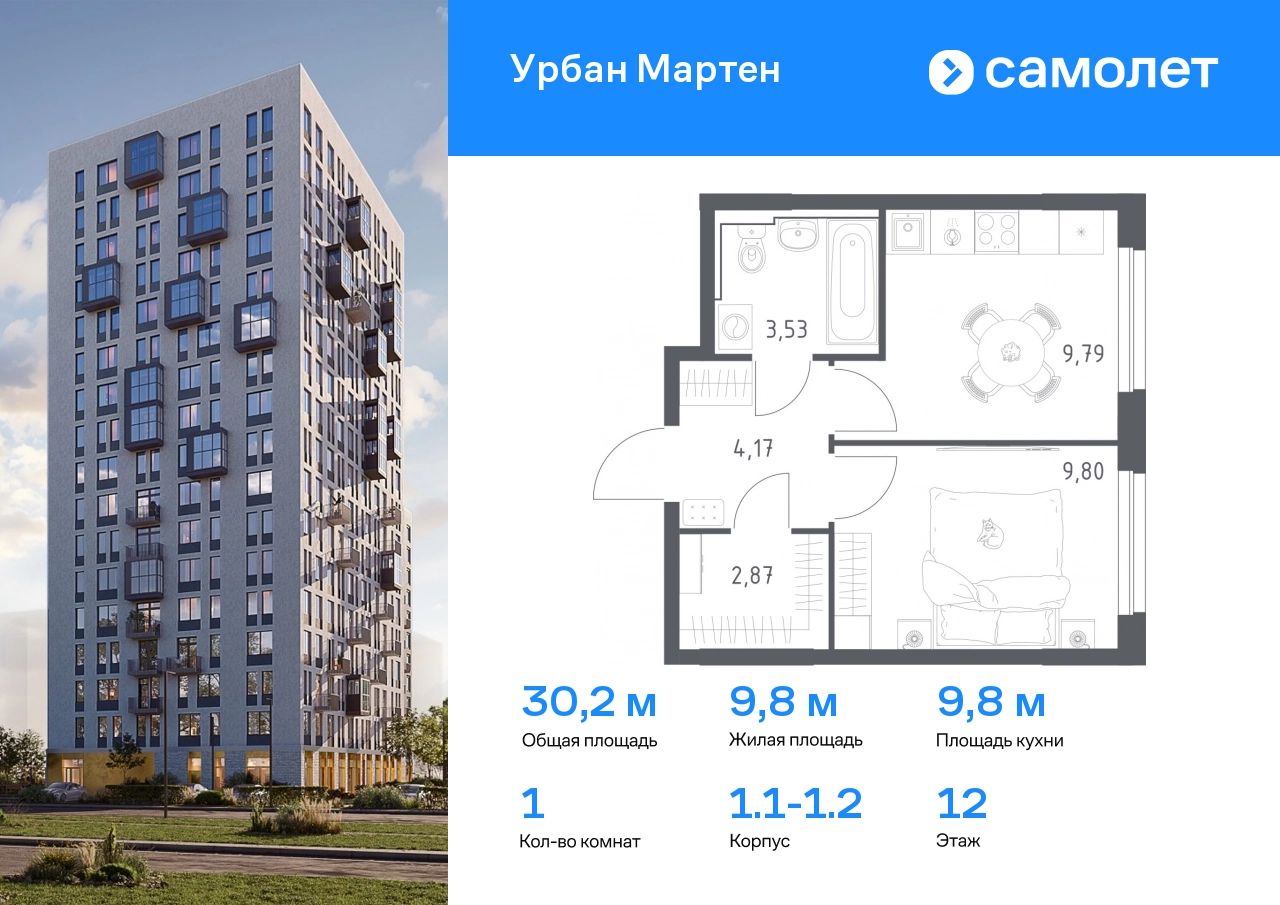 Предлагается 1-комнатная квартира комфорт-класса 30,16 кв.м в корпусе 1.1-1.2 на 12 этаже, в ЖК "Урбан Мартен" Квартира с чистовой отделкой. Доступность дополнительных опций уточняйте у застройщика. Планировкой предусмотрены: Кухня - 9,79 м² Жилая_комната_1 - 9,8 м² Су_1 - 3,53 м² Гардероб - 2,87 м² Прихожая - 4,17 м² Приобрести квартиру возможно по специальным акциям от застройщика, с текущими условиями акций можно ознакомиться в блоке “Акций”. Цена динамическая и может отличаться, уточняйте актуальность у застройщика. В жилом комплексе «Урбан Мартен» у вас будет собственная Уфа: домашняя, неторопливая, теплая. Здесь дети будут играть во дворе без машин в догонялки, собака сможет бегать за палкой по пляжу, а с соседями получится встречаться не только у лифта, но и на утренних занятиях йогой на зеленой лужайке рядом с домом. Жилой комплекс «Урбан Мартен» находится в Демском районе — самом тихом и зеленом в Уфе. Здесь можно открывать окна нараспашку, чтобы квартира наполнялась свежим воздухом, и наблюдать с балкона, как покачиваются макушки деревьев. #yan19-2r1758649#О застройщике