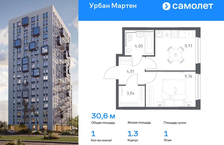 Строим кварталы для жизни с заботой о будущем. Предлагается 1-комнатная квартира комфорт-класса 30,31 кв.м в корпусе 1.3 на 1 этаже, в ЖК «Урбан Мартен» Квартира с предчистовой отделкой. Доступность дополнительных опций уточняйте у застройщика. Приобрести квартиру возможно по специальным акциям от застройщика, с текущими условиями акций можно ознакомиться в блоке «Акций». Цена динамическая и может отличаться, уточняйте актуальность у застройщика. В жилом комплексе «Урбан Мартен» у вас будет собственная Уфа: домашняя, неторопливая, теплая. Здесь дети будут играть во дворе без машин в догонялки, собака сможет бегать за палкой по пляжу, а с соседями получится встречаться не только у лифта, но и на утренних занятиях йогой на зеленой лужайке рядом с домом. Жилой комплекс «Урбан Мартен» находится в Демском районе — самом тихом и зеленом в Уфе. Здесь можно открывать окна нараспашку, чтобы квартира наполнялась свежим воздухом, и наблюдать с балкона, как покачиваются макушки деревьев. #yan19-2r1798835#О застройщике