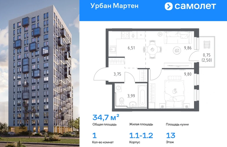 Предлагается 1-комнатная квартира комфорт-класса 34,66 кв.м в корпусе 1.1-1.2 на 13 этаже, в ЖК «Урбан Мартен» Квартира с предчистовой отделкой. Доступность дополнительных опций уточняйте у застройщика. Приобрести квартиру возможно по специальным акциям от застройщика, с текущими условиями акций можно ознакомиться в блоке “Акций”. Цена динамическая и может отличаться, уточняйте актуальность у застройщика. В жилом комплексе «Урбан Мартен» у вас будет собственная Уфа: домашняя, неторопливая, теплая. Здесь дети будут играть во дворе без машин в догонялки, собака сможет бегать за палкой по пляжу, а с соседями получится встречаться не только у лифта, но и на утренних занятиях йогой на зеленой лужайке рядом с домом. Жилой комплекс «Урбан Мартен» находится в Демском районе — самом тихом и зеленом в Уфе. Здесь можно открывать окна нараспашку, чтобы квартира наполнялась свежим воздухом, и наблюдать с балкона, как покачиваются макушки деревьев. #yan19-2r1801088#О застройщике