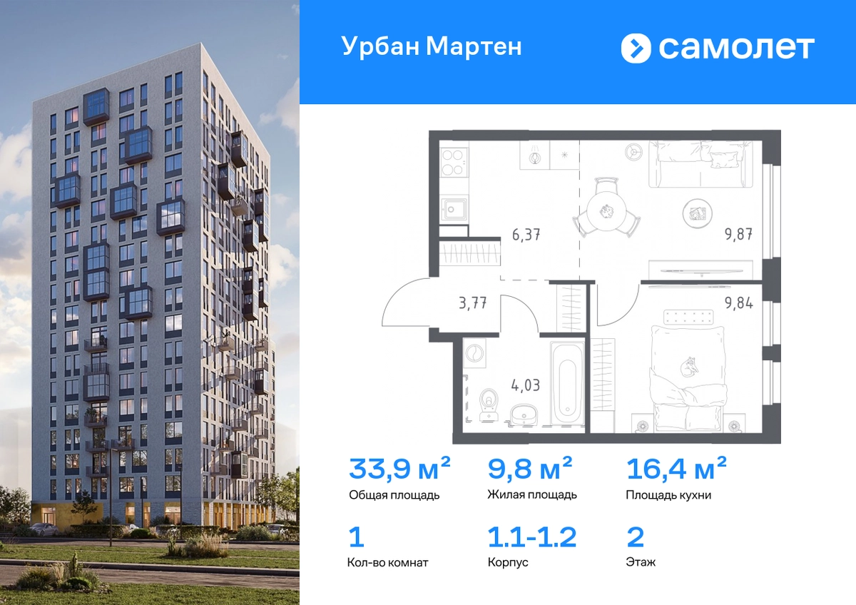 Предлагается 1-комнатная квартира комфорт-класса 33,88 кв.м в корпусе 1.1-1.2 на 2 этаже, в ЖК «Урбан Мартен» Квартира с предчистовой отделкой. Доступность дополнительных опций уточняйте у застройщика. Приобрести квартиру возможно по специальным акциям от застройщика, с текущими условиями акций можно ознакомиться в блоке «Акций». Цена динамическая и может отличаться, уточняйте актуальность у застройщика. В жилом комплексе «Урбан Мартен» у вас будет собственная Уфа: домашняя, неторопливая, теплая. Здесь дети будут играть во дворе без машин в догонялки, собака сможет бегать за палкой по пляжу, а с соседями получится встречаться не только у лифта, но и на утренних занятиях йогой на зеленой лужайке рядом с домом. Жилой комплекс «Урбан Мартен» находится в Демском районе — самом тихом и зеленом в Уфе. Здесь можно открывать окна нараспашку, чтобы квартира наполнялась свежим воздухом, и наблюдать с балкона, как покачиваются макушки деревьев. #yan19-2r1807988#О застройщике