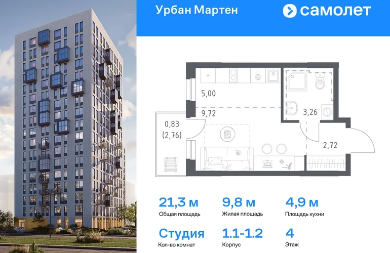 Строим кварталы для жизни с заботой о будущем. Предлагается квартира студия комфорт-класса 21,53 кв.м в корпусе 1.1-1.2 на 4 этаже, в ЖК «Урбан Мартен» Квартира с предчистовой отделкой. Доступность дополнительных опций уточняйте у застройщика. Приобрести квартиру возможно по специальным акциям от застройщика, с текущими условиями акций можно ознакомиться в блоке «Акций». Цена динамическая и может отличаться, уточняйте актуальность у застройщика. В жилом комплексе «Урбан Мартен» у вас будет собственная Уфа: домашняя, неторопливая, теплая. Здесь дети будут играть во дворе без машин в догонялки, собака сможет бегать за палкой по пляжу, а с соседями получится встречаться не только у лифта, но и на утренних занятиях йогой на зеленой лужайке рядом с домом. Жилой комплекс «Урбан Мартен» находится в Демском районе — самом тихом и зеленом в Уфе. Здесь можно открывать окна нараспашку, чтобы квартира наполнялась свежим воздухом, и наблюдать с балкона, как покачиваются макушки деревьев. #yan19-2r1809687#О застройщике
