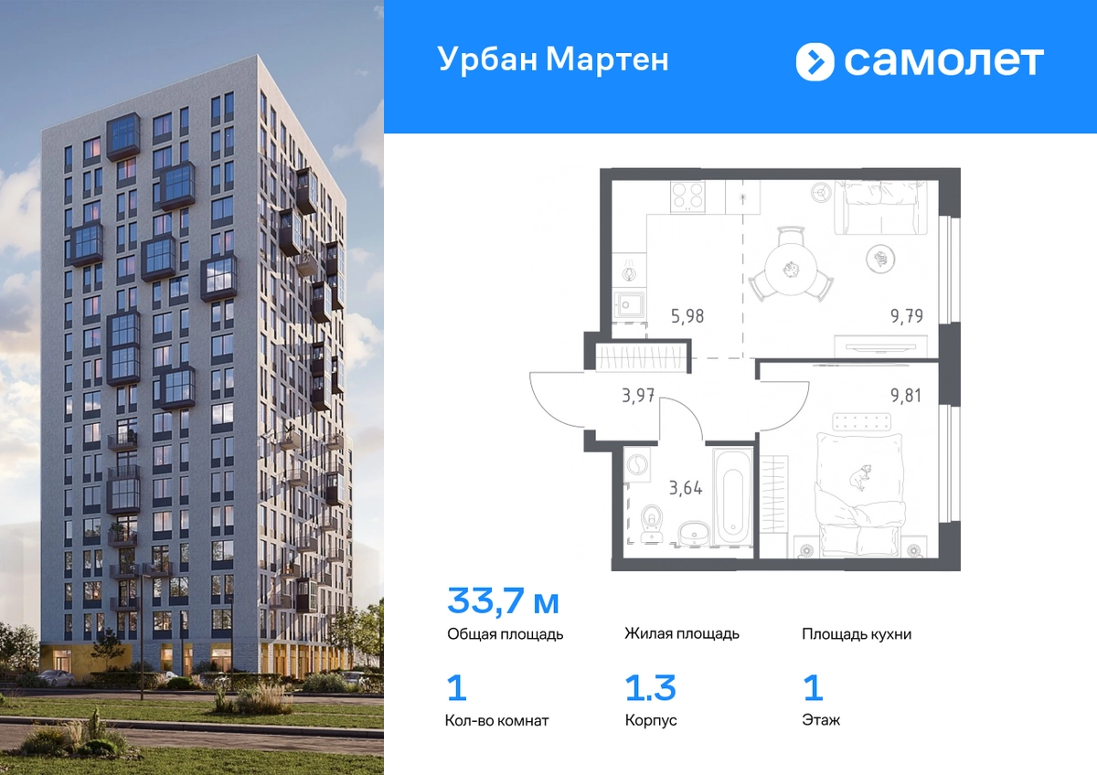 Строим кварталы для жизни с заботой о будущем. Предлагается 1-комнатная квартира комфорт-класса 33,19 кв.м в корпусе 1.3 на 1 этаже, в ЖК «Урбан Мартен» Квартира с предчистовой отделкой. Доступность дополнительных опций уточняйте у застройщика. Приобрести квартиру возможно по специальным акциям от застройщика, с текущими условиями акций можно ознакомиться в блоке «Акций». Цена динамическая и может отличаться, уточняйте актуальность у застройщика. В жилом комплексе «Урбан Мартен» у вас будет собственная Уфа: домашняя, неторопливая, теплая. Здесь дети будут играть во дворе без машин в догонялки, собака сможет бегать за палкой по пляжу, а с соседями получится встречаться не только у лифта, но и на утренних занятиях йогой на зеленой лужайке рядом с домом. Жилой комплекс «Урбан Мартен» находится в Демском районе — самом тихом и зеленом в Уфе. Здесь можно открывать окна нараспашку, чтобы квартира наполнялась свежим воздухом, и наблюдать с балкона, как покачиваются макушки деревьев. #yan19-2r1810402#О застройщике