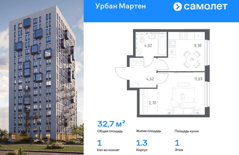 Строим кварталы для жизни с заботой о будущем. Предлагается 1-комнатная квартира комфорт-класса 32,33 кв.м в корпусе 1.3 на 1 этаже, в ЖК «Урбан Мартен» Квартира с предчистовой отделкой. Доступность дополнительных опций уточняйте у застройщика. Приобрести квартиру возможно по специальным акциям от застройщика, с текущими условиями акций можно ознакомиться в блоке «Акций». Цена динамическая и может отличаться, уточняйте актуальность у застройщика. В жилом комплексе «Урбан Мартен» у вас будет собственная Уфа: домашняя, неторопливая, теплая. Здесь дети будут играть во дворе без машин в догонялки, собака сможет бегать за палкой по пляжу, а с соседями получится встречаться не только у лифта, но и на утренних занятиях йогой на зеленой лужайке рядом с домом. Жилой комплекс «Урбан Мартен» находится в Демском районе — самом тихом и зеленом в Уфе. Здесь можно открывать окна нараспашку, чтобы квартира наполнялась свежим воздухом, и наблюдать с балкона, как покачиваются макушки деревьев. #yan19-2r1811115#О застройщике
