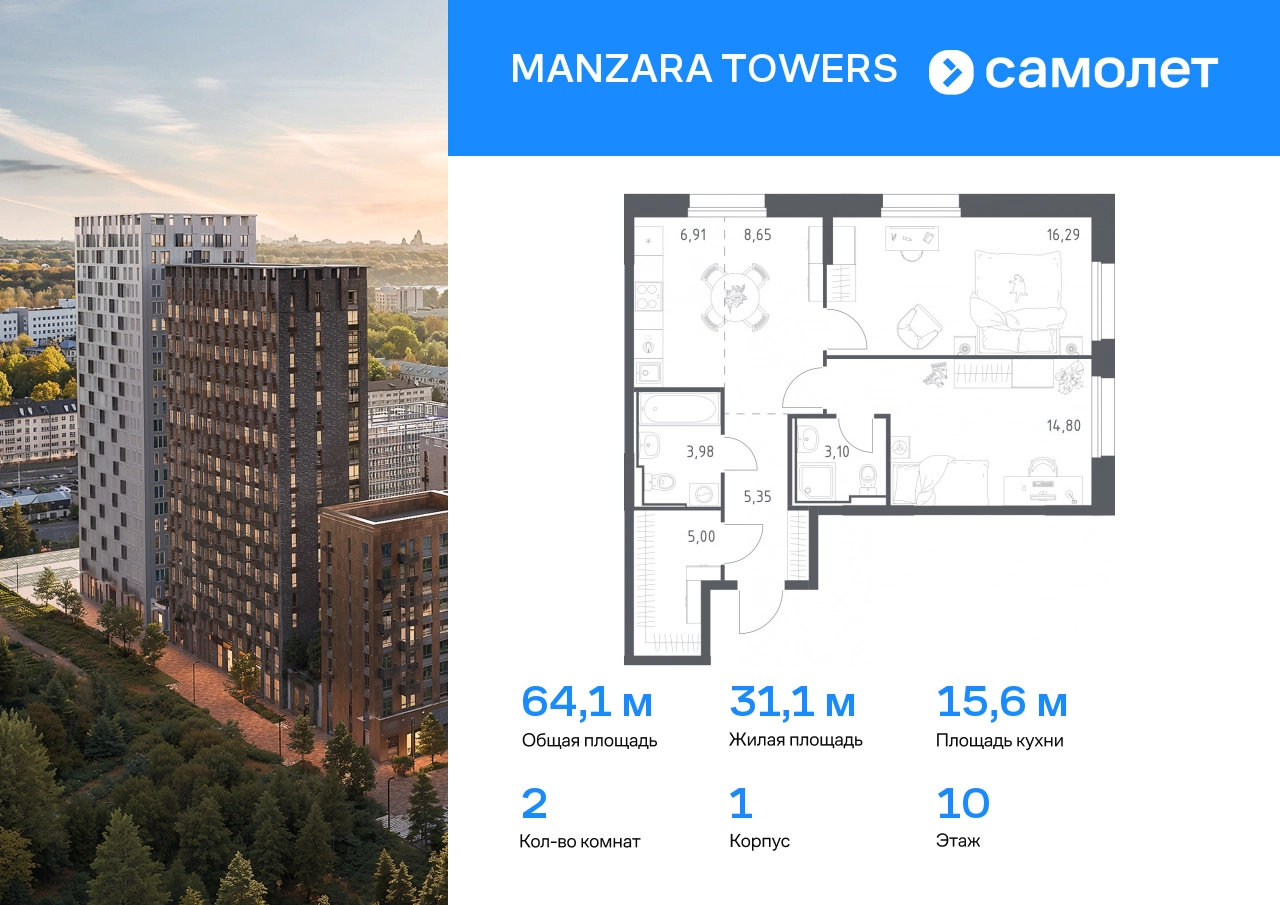 Строим кварталы для жизни с заботой о будущем. Предлагается 2-комнатная квартира комфорт-класса 64,08 кв.м в корпусе 1 на 10 этаже, в MANZARA TOWERS Квартира с предчистовой отделкой. Доступность дополнительных опций уточняйте у застройщика. Приобрести квартиру возможно по специальным акциям от застройщика, с текущими условиями акций можно ознакомиться в блоке «Акций». Цена динамическая и может отличаться, уточняйте актуальность у застройщика. Manzara Towers — это дома высотой от 7 до 24 этажей. В увеличенных окнах с зеркальной поверхностью отражаются облака и солнечные блики. Тихий двор с игровыми площадками и воркаут-пространством идеален для прогулок с кофе. На первом этаже есть выход на стилобат, где появятся зеленые оазисы и открытые террасы. Дома соединяет между собой частично прозрачный пешеходный мост. Предусмотрены подземный и 6-этажный многоуровневый паркинги. До ж/д вокзалов можно доехать за 20 минут. Или в обеденный перерыв встретиться с друзьями в центре города — дорога на машине займет около 15 минут. На первых этажах корпусов откроется детская поликлиника, ФОК с бассейном, магазины, кафе и салоны красоты. Для маленьких жителей уже работают 3 детских сада и лицей, до которых можно дойти за 6–15 минут. Во всех наших корпусах входы в светлые лобби находятся на уровне земли. На первом этаже есть специальные места для хранения колясок и велосипедов. #yan19-2r1714017#О застройщике