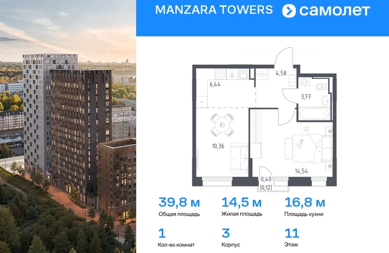 Строим кварталы для жизни с заботой о будущем. Предлагается 1-комнатная квартира комфорт-класса 39,81 кв.м в корпусе 3 на 11 этаже, в MANZARA TOWERS Квартира с предчистовой отделкой. Доступность дополнительных опций уточняйте у застройщика. Приобрести квартиру возможно по специальным акциям от застройщика, с текущими условиями акций можно ознакомиться в блоке «Акций». Цена динамическая и может отличаться, уточняйте актуальность у застройщика. Manzara Towers — это дома высотой от 7 до 24 этажей. В увеличенных окнах с зеркальной поверхностью отражаются облака и солнечные блики. Тихий двор с игровыми площадками и воркаут-пространством идеален для прогулок с кофе. На первом этаже есть выход на стилобат, где появятся зеленые оазисы и открытые террасы. Дома соединяет между собой частично прозрачный пешеходный мост. Предусмотрены подземный и 6-этажный многоуровневый паркинги. До ж/д вокзалов можно доехать за 20 минут. Или в обеденный перерыв встретиться с друзьями в центре города — дорога на машине займет около 15 минут. На первых этажах корпусов откроется детская поликлиника, ФОК с бассейном, магазины, кафе и салоны красоты. Для маленьких жителей уже работают 3 детских сада и лицей, до которых можно дойти за 6–15 минут. Во всех наших корпусах входы в светлые лобби находятся на уровне земли. На первом этаже есть специальные места для хранения колясок и велосипедов. #yan19-2r1732632#О застройщике