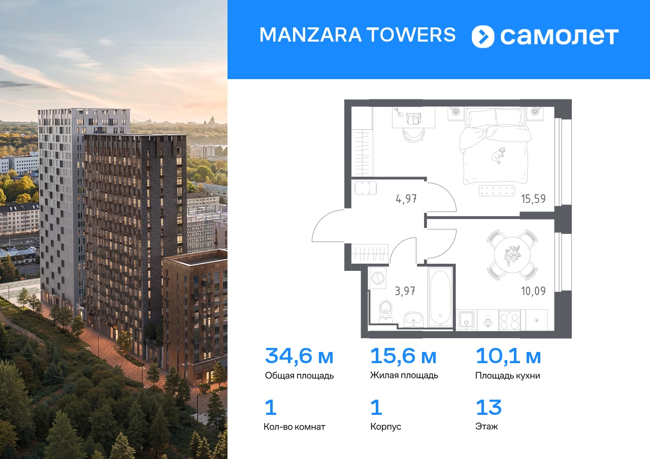Строим кварталы для жизни с заботой о будущем. Предлагается 1-комнатная квартира комфорт-класса 34,62 кв.м в корпусе 1 на 13 этаже, в MANZARA TOWERS Квартира с предчистовой отделкой. Доступность дополнительных опций уточняйте у застройщика. Приобрести квартиру возможно по специальным акциям от застройщика, с текущими условиями акций можно ознакомиться в блоке «Акций». Цена динамическая и может отличаться, уточняйте актуальность у застройщика. Manzara Towers — это дома высотой от 7 до 24 этажей. В увеличенных окнах с зеркальной поверхностью отражаются облака и солнечные блики. Тихий двор с игровыми площадками и воркаут-пространством идеален для прогулок с кофе. На первом этаже есть выход на стилобат, где появятся зеленые оазисы и открытые террасы. Дома соединяет между собой частично прозрачный пешеходный мост. Предусмотрены подземный и 6-этажный многоуровневый паркинги. До ж/д вокзалов можно доехать за 20 минут. Или в обеденный перерыв встретиться с друзьями в центре города — дорога на машине займет около 15 минут. На первых этажах корпусов откроется детская поликлиника, ФОК с бассейном, магазины, кафе и салоны красоты. Для маленьких жителей уже работают 3 детских сада и лицей, до которых можно дойти за 6–15 минут. Во всех наших корпусах входы в светлые лобби находятся на уровне земли. На первом этаже есть специальные места для хранения колясок и велосипедов. #yan19-2r1747392#О застройщике