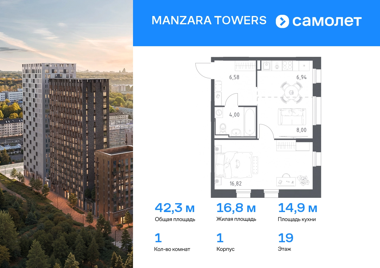 Строим кварталы для жизни с заботой о будущем. Предлагается 1-комнатная квартира комфорт-класса 42,34 кв.м в корпусе 1 на 19 этаже, в MANZARA TOWERS Квартира с предчистовой отделкой. Доступность дополнительных опций уточняйте у застройщика. Приобрести квартиру возможно по специальным акциям от застройщика, с текущими условиями акций можно ознакомиться в блоке «Акций». Цена динамическая и может отличаться, уточняйте актуальность у застройщика. Manzara Towers — это дома высотой от 7 до 24 этажей. В увеличенных окнах с зеркальной поверхностью отражаются облака и солнечные блики. Тихий двор с игровыми площадками и воркаут-пространством идеален для прогулок с кофе. На первом этаже есть выход на стилобат, где появятся зеленые оазисы и открытые террасы. Дома соединяет между собой частично прозрачный пешеходный мост. Предусмотрены подземный и 6-этажный многоуровневый паркинги. До ж/д вокзалов можно доехать за 20 минут. Или в обеденный перерыв встретиться с друзьями в центре города — дорога на машине займет около 15 минут. На первых этажах корпусов откроется детская поликлиника, ФОК с бассейном, магазины, кафе и салоны красоты. Для маленьких жителей уже работают 3 детских сада и лицей, до которых можно дойти за 6–15 минут. Во всех наших корпусах входы в светлые лобби находятся на уровне земли. На первом этаже есть специальные места для хранения колясок и велосипедов. #yan19-2r1747401#О застройщике