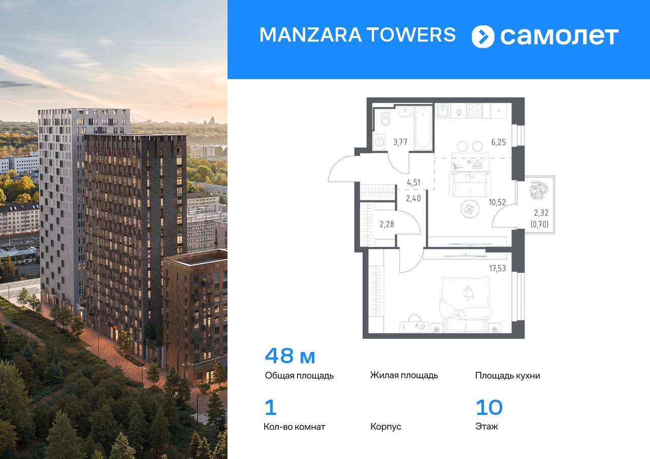 Строим кварталы для жизни с заботой о будущем. Предлагается 1-комнатная квартира комфорт-класса 47,96 кв.м в корпусе 4 на 10 этаже, в MANZARA TOWERS Квартира с предчистовой отделкой. Доступность дополнительных опций уточняйте у застройщика. Приобрести квартиру возможно по специальным акциям от застройщика, с текущими условиями акций можно ознакомиться в блоке «Акций». Цена динамическая и может отличаться, уточняйте актуальность у застройщика. Manzara Towers — это дома высотой от 7 до 24 этажей. В увеличенных окнах с зеркальной поверхностью отражаются облака и солнечные блики. Тихий двор с игровыми площадками и воркаут-пространством идеален для прогулок с кофе. На первом этаже есть выход на стилобат, где появятся зеленые оазисы и открытые террасы. Дома соединяет между собой частично прозрачный пешеходный мост. Предусмотрены подземный и 6-этажный многоуровневый паркинги. До ж/д вокзалов можно доехать за 20 минут. Или в обеденный перерыв встретиться с друзьями в центре города — дорога на машине займет около 15 минут. На первых этажах корпусов откроется детская поликлиника, ФОК с бассейном, магазины, кафе и салоны красоты. Для маленьких жителей уже работают 3 детских сада и лицей, до которых можно дойти за 6–15 минут. Во всех наших корпусах входы в светлые лобби находятся на уровне земли. На первом этаже есть специальные места для хранения колясок и велосипедов. #yan19-2r1791928#О застройщике