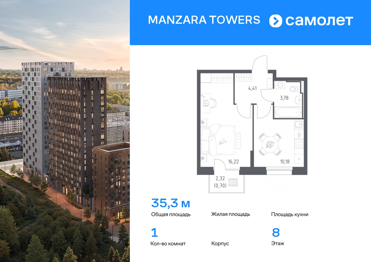 Предлагается 1-комнатная квартира комфорт-класса 35,29 кв.м в корпусе 5 на 8 этаже, в MANZARA TOWERS Квартира с черновой отделкой. Доступность опции «отделка» и возможность комплектации мебелью и декором уточняйте у застройщика. Приобрести квартиру возможно по специальным акциям от застройщика, с текущими условиями акций можно ознакомиться в блоке «Акций». Цена динамическая и может отличаться, уточняйте актуальность у застройщика. Manzara Towers — это дома высотой от 7 до 24 этажей. В увеличенных окнах с зеркальной поверхностью отражаются облака и солнечные блики. Тихий двор с игровыми площадками и воркаут-пространством идеален для прогулок с кофе. На первом этаже есть выход на стилобат, где появятся зеленые оазисы и открытые террасы. Дома соединяет между собой частично прозрачный пешеходный мост. Предусмотрены подземный и 6-этажный многоуровневый паркинги. До ж/д вокзалов можно доехать за 20 минут. Или в обеденный перерыв встретиться с друзьями в центре города — дорога на машине займет около 15 минут. На первых этажах корпусов откроется детская поликлиника, ФОК с бассейном, магазины, кафе и салоны красоты. Для маленьких жителей уже работают 3 детских сада и лицей, до которых можно дойти за 6–15 минут. Во всех наших корпусах входы в светлые лобби находятся на уровне земли. На первом этаже есть специальные места для хранения колясок и велосипедов. #yan19-2r1791965#О застройщике