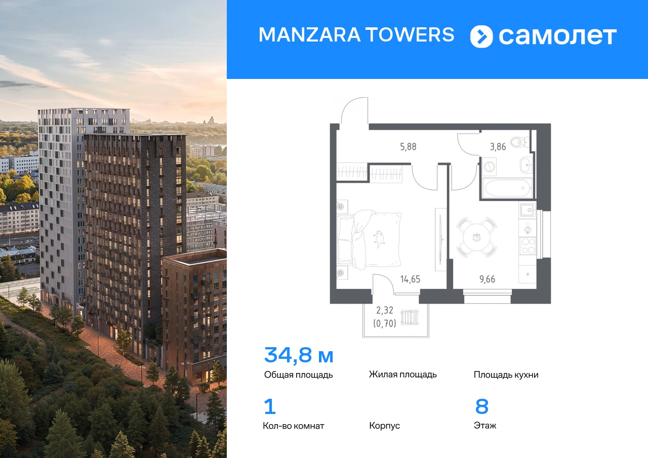 Строим кварталы для жизни с заботой о будущем. Предлагается 1-комнатная квартира комфорт-класса 34,75 кв.м в корпусе 5 на 8 этаже, в MANZARA TOWERS Квартира с черновой отделкой. Доступность опции «отделка» и возможность комплектации мебелью и декором уточняйте у застройщика. Приобрести квартиру возможно по специальным акциям от застройщика, с текущими условиями акций можно ознакомиться в блоке «Акций». Цена динамическая и может отличаться, уточняйте актуальность у застройщика. Manzara Towers — это дома высотой от 7 до 24 этажей. В увеличенных окнах с зеркальной поверхностью отражаются облака и солнечные блики. Тихий двор с игровыми площадками и воркаут-пространством идеален для прогулок с кофе. На первом этаже есть выход на стилобат, где появятся зеленые оазисы и открытые террасы. Дома соединяет между собой частично прозрачный пешеходный мост. Предусмотрены подземный и 6-этажный многоуровневый паркинги. До ж/д вокзалов можно доехать за 20 минут. Или в обеденный перерыв встретиться с друзьями в центре города — дорога на машине займет около 15 минут. На первых этажах корпусов откроется детская поликлиника, ФОК с бассейном, магазины, кафе и салоны красоты. Для маленьких жителей уже работают 3 детских сада и лицей, до которых можно дойти за 6–15 минут. Во всех наших корпусах входы в светлые лобби находятся на уровне земли. На первом этаже есть специальные места для хранения колясок и велосипедов. #yan19-2r1791966#О застройщике