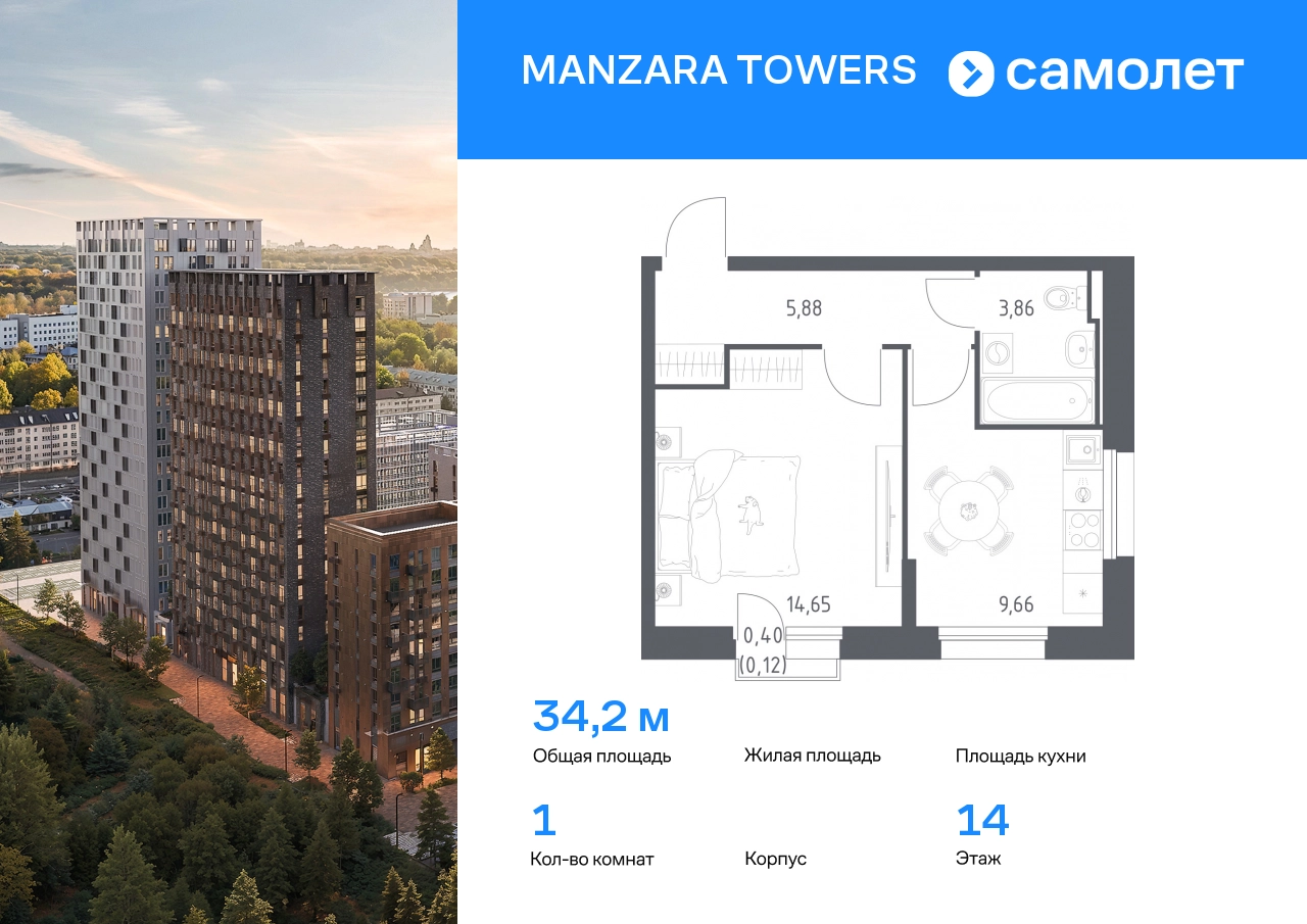 Строим кварталы для жизни с заботой о будущем. Предлагается 1-комнатная квартира комфорт-класса 34,17 кв.м в корпусе 5 на 14 этаже, в MANZARA TOWERS Квартира с черновой отделкой. Доступность опции «отделка» и возможность комплектации мебелью и декором уточняйте у застройщика. Приобрести квартиру возможно по специальным акциям от застройщика, с текущими условиями акций можно ознакомиться в блоке «Акций». Цена динамическая и может отличаться, уточняйте актуальность у застройщика. Manzara Towers — это дома высотой от 7 до 24 этажей. В увеличенных окнах с зеркальной поверхностью отражаются облака и солнечные блики. Тихий двор с игровыми площадками и воркаут-пространством идеален для прогулок с кофе. На первом этаже есть выход на стилобат, где появятся зеленые оазисы и открытые террасы. Дома соединяет между собой частично прозрачный пешеходный мост. Предусмотрены подземный и 6-этажный многоуровневый паркинги. До ж/д вокзалов можно доехать за 20 минут. Или в обеденный перерыв встретиться с друзьями в центре города — дорога на машине займет около 15 минут. На первых этажах корпусов откроется детская поликлиника, ФОК с бассейном, магазины, кафе и салоны красоты. Для маленьких жителей уже работают 3 детских сада и лицей, до которых можно дойти за 6–15 минут. Во всех наших корпусах входы в светлые лобби находятся на уровне земли. На первом этаже есть специальные места для хранения колясок и велосипедов. #yan19-2r1791969#О застройщике