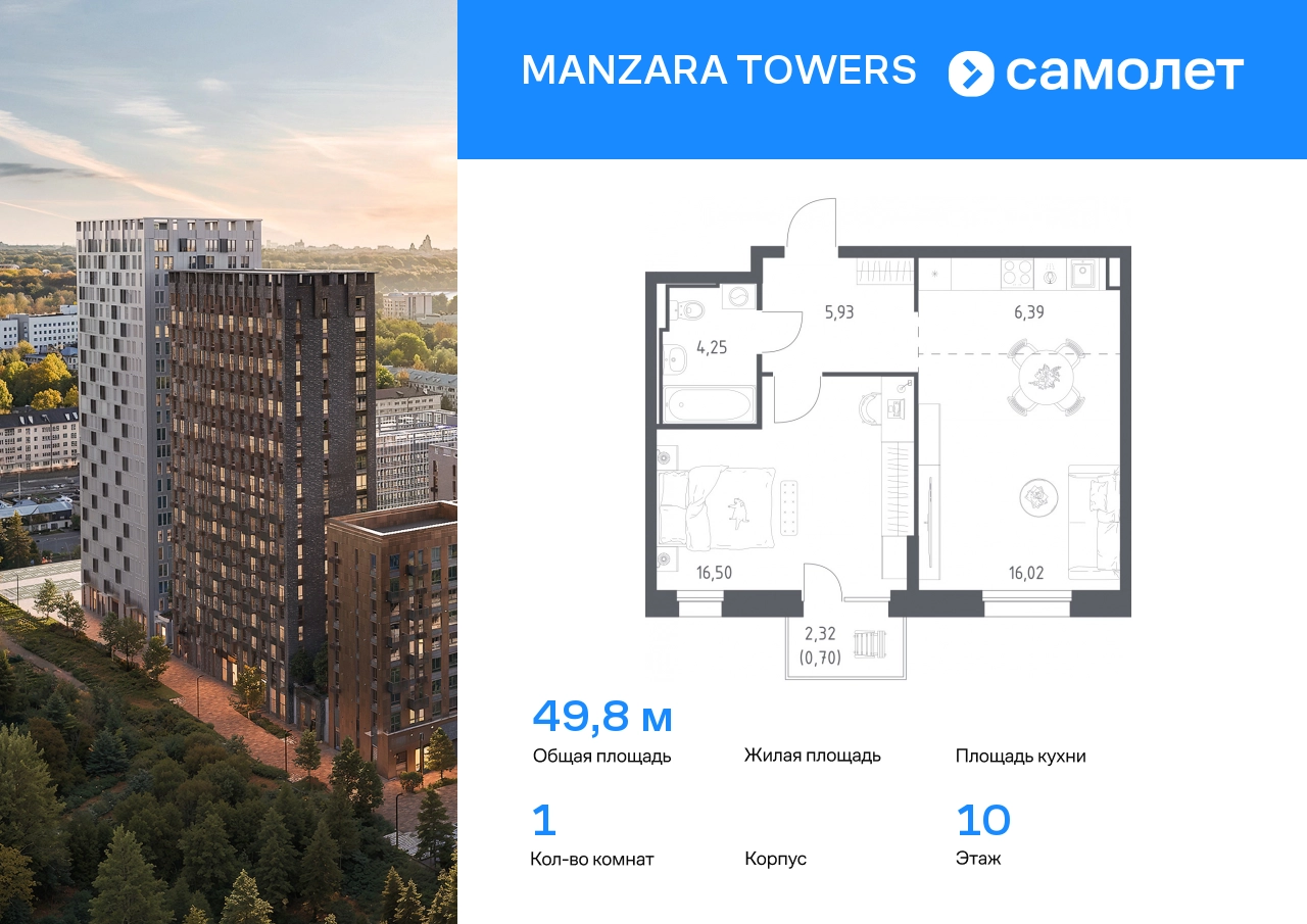Строим кварталы для жизни с заботой о будущем. Предлагается 1-комнатная квартира комфорт-класса 49,79 кв.м в корпусе 5 на 10 этаже, в MANZARA TOWERS Квартира с предчистовой отделкой. Доступность дополнительных опций уточняйте у застройщика. Приобрести квартиру возможно по специальным акциям от застройщика, с текущими условиями акций можно ознакомиться в блоке «Акций». Цена динамическая и может отличаться, уточняйте актуальность у застройщика. Manzara Towers — это дома высотой от 7 до 24 этажей. В увеличенных окнах с зеркальной поверхностью отражаются облака и солнечные блики. Тихий двор с игровыми площадками и воркаут-пространством идеален для прогулок с кофе. На первом этаже есть выход на стилобат, где появятся зеленые оазисы и открытые террасы. Дома соединяет между собой частично прозрачный пешеходный мост. Предусмотрены подземный и 6-этажный многоуровневый паркинги. До ж/д вокзалов можно доехать за 20 минут. Или в обеденный перерыв встретиться с друзьями в центре города — дорога на машине займет около 15 минут. На первых этажах корпусов откроется детская поликлиника, ФОК с бассейном, магазины, кафе и салоны красоты. Для маленьких жителей уже работают 3 детских сада и лицей, до которых можно дойти за 6–15 минут. Во всех наших корпусах входы в светлые лобби находятся на уровне земли. На первом этаже есть специальные места для хранения колясок и велосипедов. #yan19-2r1791977#О застройщике