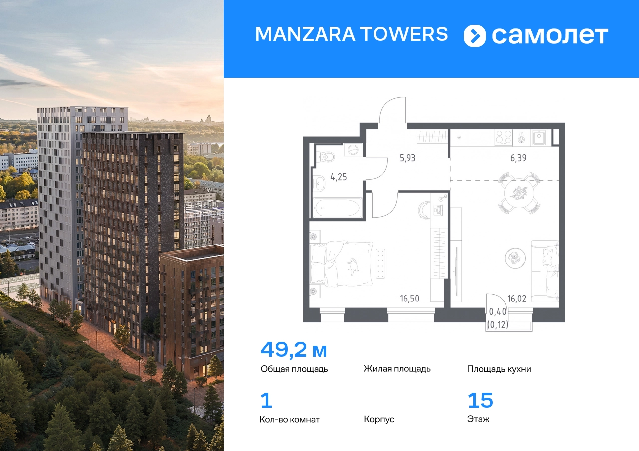 Строим кварталы для жизни с заботой о будущем. Предлагается 1-комнатная квартира комфорт-класса 49,21 кв.м в корпусе 5 на 15 этаже, в MANZARA TOWERS Квартира с предчистовой отделкой. Доступность дополнительных опций уточняйте у застройщика. Приобрести квартиру возможно по специальным акциям от застройщика, с текущими условиями акций можно ознакомиться в блоке «Акций». Цена динамическая и может отличаться, уточняйте актуальность у застройщика. Manzara Towers — это дома высотой от 7 до 24 этажей. В увеличенных окнах с зеркальной поверхностью отражаются облака и солнечные блики. Тихий двор с игровыми площадками и воркаут-пространством идеален для прогулок с кофе. На первом этаже есть выход на стилобат, где появятся зеленые оазисы и открытые террасы. Дома соединяет между собой частично прозрачный пешеходный мост. Предусмотрены подземный и 6-этажный многоуровневый паркинги. До ж/д вокзалов можно доехать за 20 минут. Или в обеденный перерыв встретиться с друзьями в центре города — дорога на машине займет около 15 минут. На первых этажах корпусов откроется детская поликлиника, ФОК с бассейном, магазины, кафе и салоны красоты. Для маленьких жителей уже работают 3 детских сада и лицей, до которых можно дойти за 6–15 минут. Во всех наших корпусах входы в светлые лобби находятся на уровне земли. На первом этаже есть специальные места для хранения колясок и велосипедов. #yan19-2r1791978#О застройщике