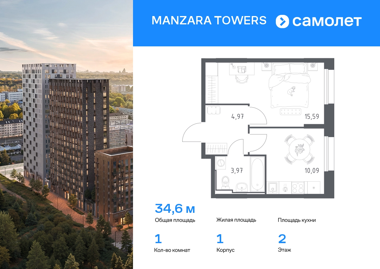 Предлагается 1-комнатная квартира комфорт-класса 34,62 кв.м в корпусе 1 на 2 этаже, в MANZARA TOWERS Квартира с предчистовой отделкой. Доступность дополнительных опций уточняйте у застройщика. Приобрести квартиру возможно по специальным акциям от застройщика, с текущими условиями акций можно ознакомиться в блоке “Акций”. Цена динамическая и может отличаться, уточняйте актуальность у застройщика. Manzara Towers — это дома высотой от 7 до 24 этажей. В увеличенных окнах с зеркальной поверхностью отражаются облака и солнечные блики. Тихий двор с игровыми площадками и воркаут-пространством идеален для прогулок с кофе. На первом этаже есть выход на стилобат, где появятся зеленые оазисы и открытые террасы. Дома соединяет между собой частично прозрачный пешеходный мост. Предусмотрены подземный и 6-этажный многоуровневый паркинги. До ж/д вокзалов можно доехать за 20 минут. Или в обеденный перерыв встретиться с друзьями в центре города — дорога на машине займет около 15 минут. На первых этажах корпусов откроется детская поликлиника, ФОК с бассейном, магазины, кафе и салоны красоты. Для маленьких жителей уже работают 3 детских сада и лицей, до которых можно дойти за 6–15 минут. Во всех наших корпусах входы в светлые лобби находятся на уровне земли. На первом этаже есть специальные места для хранения колясок и велосипедов. #yan19-2r1791981#О застройщике