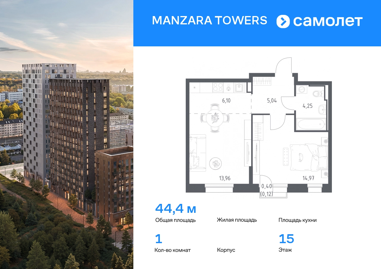 Строим кварталы для жизни с заботой о будущем. Предлагается 1-комнатная квартира комфорт-класса 44,44 кв.м в корпусе 5 на 15 этаже, в MANZARA TOWERS Квартира с предчистовой отделкой. Доступность дополнительных опций уточняйте у застройщика. Приобрести квартиру возможно по специальным акциям от застройщика, с текущими условиями акций можно ознакомиться в блоке «Акций». Цена динамическая и может отличаться, уточняйте актуальность у застройщика. Manzara Towers — это дома высотой от 7 до 24 этажей. В увеличенных окнах с зеркальной поверхностью отражаются облака и солнечные блики. Тихий двор с игровыми площадками и воркаут-пространством идеален для прогулок с кофе. На первом этаже есть выход на стилобат, где появятся зеленые оазисы и открытые террасы. Дома соединяет между собой частично прозрачный пешеходный мост. Предусмотрены подземный и 6-этажный многоуровневый паркинги. До ж/д вокзалов можно доехать за 20 минут. Или в обеденный перерыв встретиться с друзьями в центре города — дорога на машине займет около 15 минут. На первых этажах корпусов откроется детская поликлиника, ФОК с бассейном, магазины, кафе и салоны красоты. Для маленьких жителей уже работают 3 детских сада и лицей, до которых можно дойти за 6–15 минут. Во всех наших корпусах входы в светлые лобби находятся на уровне земли. На первом этаже есть специальные места для хранения колясок и велосипедов. #yan19-2r1792231#О застройщике