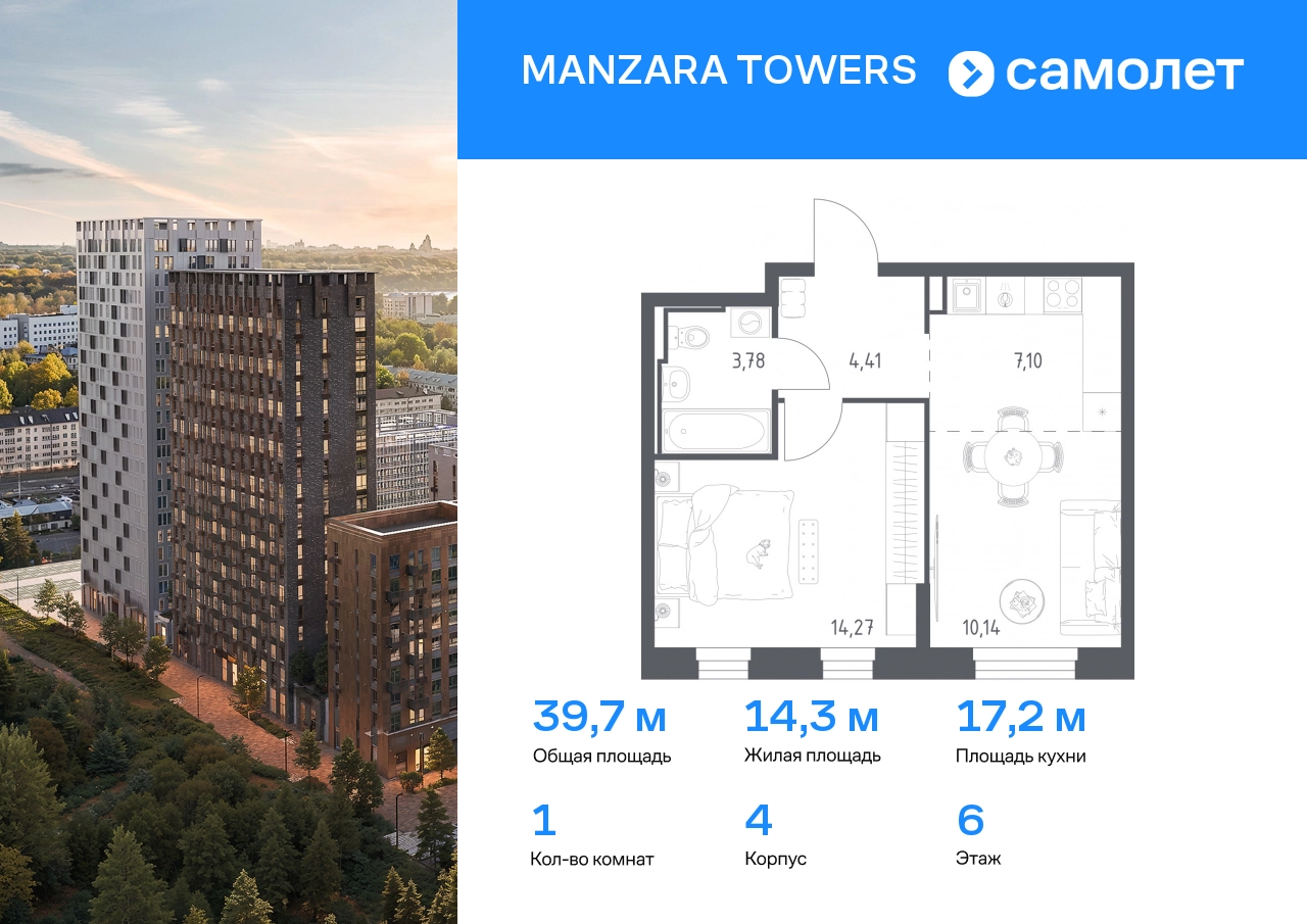 Предлагается 1-комнатная квартира комфорт-класса 39,7 кв.м в корпусе 4 на 6 этаже, в MANZARA TOWERS Квартира с чистовой отделкой. Доступность дополнительных опций уточняйте у застройщика. Приобрести квартиру возможно по специальным акциям от застройщика, с текущими условиями акций можно ознакомиться в блоке «Акций». Цена динамическая и может отличаться, уточняйте актуальность у застройщика. Manzara Towers — это дома высотой от 7 до 24 этажей. В увеличенных окнах с зеркальной поверхностью отражаются облака и солнечные блики. Тихий двор с игровыми площадками и воркаут-пространством идеален для прогулок с кофе. На первом этаже есть выход на стилобат, где появятся зеленые оазисы и открытые террасы. Дома соединяет между собой частично прозрачный пешеходный мост. Предусмотрены подземный и 6-этажный многоуровневый паркинги. До ж/д вокзалов можно доехать за 20 минут. Или в обеденный перерыв встретиться с друзьями в центре города — дорога на машине займет около 15 минут. На первых этажах корпусов откроется детская поликлиника, ФОК с бассейном, магазины, кафе и салоны красоты. Для маленьких жителей уже работают 3 детских сада и лицей, до которых можно дойти за 6–15 минут. Во всех наших корпусах входы в светлые лобби находятся на уровне земли. На первом этаже есть специальные места для хранения колясок и велосипедов. #yan19-2r1799693#О застройщике