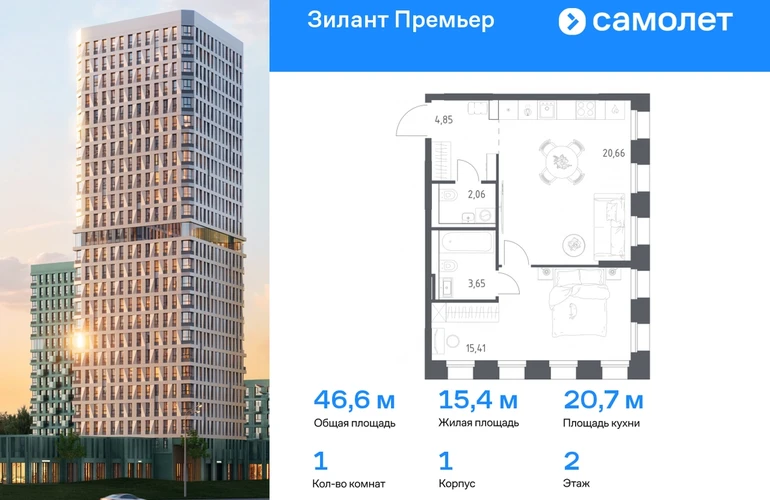 Предлагается 1-комнатная квартира комфорт-класса 46,63 кв.м в корпусе 1 на 2 этаже, в ЖК «Зилант Премьер» Квартира с предчистовой отделкой. Доступность дополнительных опций уточняйте у застройщика. Приобрести квартиру возможно по специальным акциям от застройщика, с текущими условиями акций можно ознакомиться в блоке “Акций”. Цена динамическая и может отличаться, уточняйте актуальность у застройщика. Жилой комплекс «Зилант Премьер» расположен в молодом районе города. До кремля — 20 минут на авто. В получасе пешком — метро «Горки». Рядом Горкинско-Ометьевский лес, 3 школы, 2 детских сада и поликлиника, скоро откроется свой детский сад. Дома высотой от 1 до 25 этажей с фасадами, которые оживляют открытые французские балконы. В уютном дворе — детские площадки и воркаут-зона.#yan19-2r1769208#О застройщике