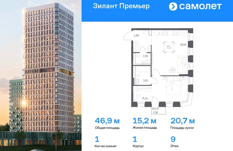 Строим кварталы для жизни с заботой о будущем. Предлагается 1-комнатная квартира комфорт-класса 46,93 кв.м в корпусе 1 на 9 этаже, в ЖК «Зилант Премьер» Квартира с предчистовой отделкой. Доступность дополнительных опций уточняйте у застройщика. Приобрести квартиру возможно по специальным акциям от застройщика, с текущими условиями акций можно ознакомиться в блоке «Акций». Цена динамическая и может отличаться, уточняйте актуальность у застройщика. Жилой комплекс «Зилант Премьер» расположен в молодом районе города. До кремля — 20 минут на авто. В получасе пешком — метро «Горки». Рядом Горкинско-Ометьевский лес, 3 школы, 2 детских сада и поликлиника, скоро откроется свой детский сад. Дома высотой от 1 до 25 этажей с фасадами, которые оживляют открытые французские балконы. В уютном дворе — детские площадки и воркаут-зона.#yan19-2r1769215#О застройщике