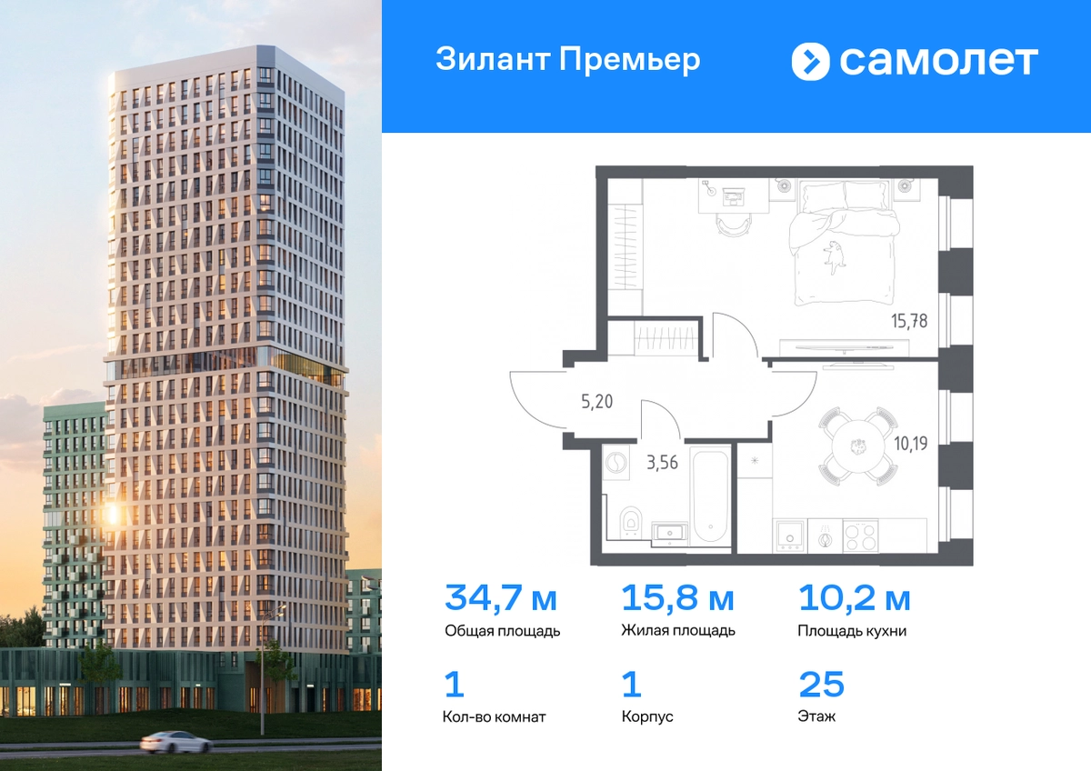 Предлагается 1-комнатная квартира комфорт-класса 34,73 кв.м в корпусе 1 на 25 этаже, в ЖК «Зилант Премьер» Квартира с предчистовой отделкой. Доступность дополнительных опций уточняйте у застройщика. Приобрести квартиру возможно по специальным акциям от застройщика, с текущими условиями акций можно ознакомиться в блоке “Акций”. Цена динамическая и может отличаться, уточняйте актуальность у застройщика. Жилой комплекс «Зилант Премьер» расположен в молодом районе города. До кремля — 20 минут на авто. В получасе пешком — метро «Горки». Рядом Горкинско-Ометьевский лес, 3 школы, 2 детских сада и поликлиника, скоро откроется свой детский сад. Дома высотой от 1 до 25 этажей с фасадами, которые оживляют открытые французские балконы. В уютном дворе — детские площадки и воркаут-зона.#yan19-2r1769216#О застройщике