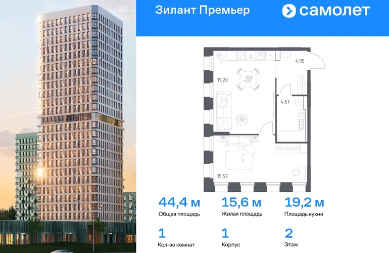 Строим кварталы для жизни с заботой о будущем. Предлагается 1-комнатная квартира комфорт-класса 44,39 кв.м в корпусе 1 на 2 этаже, в ЖК «Зилант Премьер» Квартира с предчистовой отделкой. Доступность дополнительных опций уточняйте у застройщика. Приобрести квартиру возможно по специальным акциям от застройщика, с текущими условиями акций можно ознакомиться в блоке «Акций». Цена динамическая и может отличаться, уточняйте актуальность у застройщика. Жилой комплекс «Зилант Премьер» расположен в молодом районе города. До кремля — 20 минут на авто. В получасе пешком — метро «Горки». Рядом Горкинско-Ометьевский лес, 3 школы, 2 детских сада и поликлиника, скоро откроется свой детский сад. Дома высотой от 1 до 25 этажей с фасадами, которые оживляют открытые французские балконы. В уютном дворе — детские площадки и воркаут-зона.#yan19-2r1769232#О застройщике