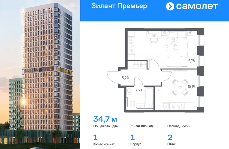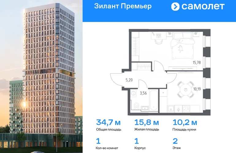 Строим кварталы для жизни с заботой о будущем. Предлагается 1-комнатная квартира комфорт-класса 34,73 кв.м в корпусе 1 на 2 этаже, в ЖК «Зилант Премьер» Квартира с предчистовой отделкой. Доступность дополнительных опций уточняйте у застройщика. Приобрести квартиру возможно по специальным акциям от застройщика, с текущими условиями акций можно ознакомиться в блоке «Акций». Цена динамическая и может отличаться, уточняйте актуальность у застройщика. Жилой комплекс «Зилант Премьер» расположен в молодом районе города. До кремля — 20 минут на авто. В получасе пешком — метро «Горки». Рядом Горкинско-Ометьевский лес, 3 школы, 2 детских сада и поликлиника, скоро откроется свой детский сад. Дома высотой от 1 до 25 этажей с фасадами, которые оживляют открытые французские балконы. В уютном дворе — детские площадки и воркаут-зона.#yan19-2r1769842#О застройщике