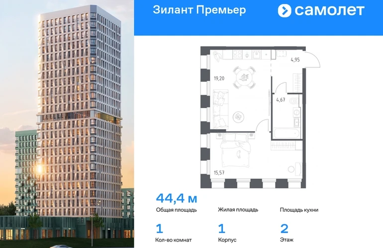 Предлагается 1-комнатная квартира комфорт-класса 44,39 кв.м в корпусе 1 на 2 этаже, в ЖК «Зилант Премьер» Квартира с предчистовой отделкой. Доступность дополнительных опций уточняйте у застройщика. Приобрести квартиру возможно по специальным акциям от застройщика, с текущими условиями акций можно ознакомиться в блоке “Акций”. Цена динамическая и может отличаться, уточняйте актуальность у застройщика. Жилой комплекс «Зилант Премьер» расположен в молодом районе города. До кремля — 20 минут на авто. В получасе пешком — метро «Горки». Рядом Горкинско-Ометьевский лес, 3 школы, 2 детских сада и поликлиника, скоро откроется свой детский сад. Дома высотой от 1 до 25 этажей с фасадами, которые оживляют открытые французские балконы. В уютном дворе — детские площадки и воркаут-зона.#yan19-2r1770122#О застройщике
