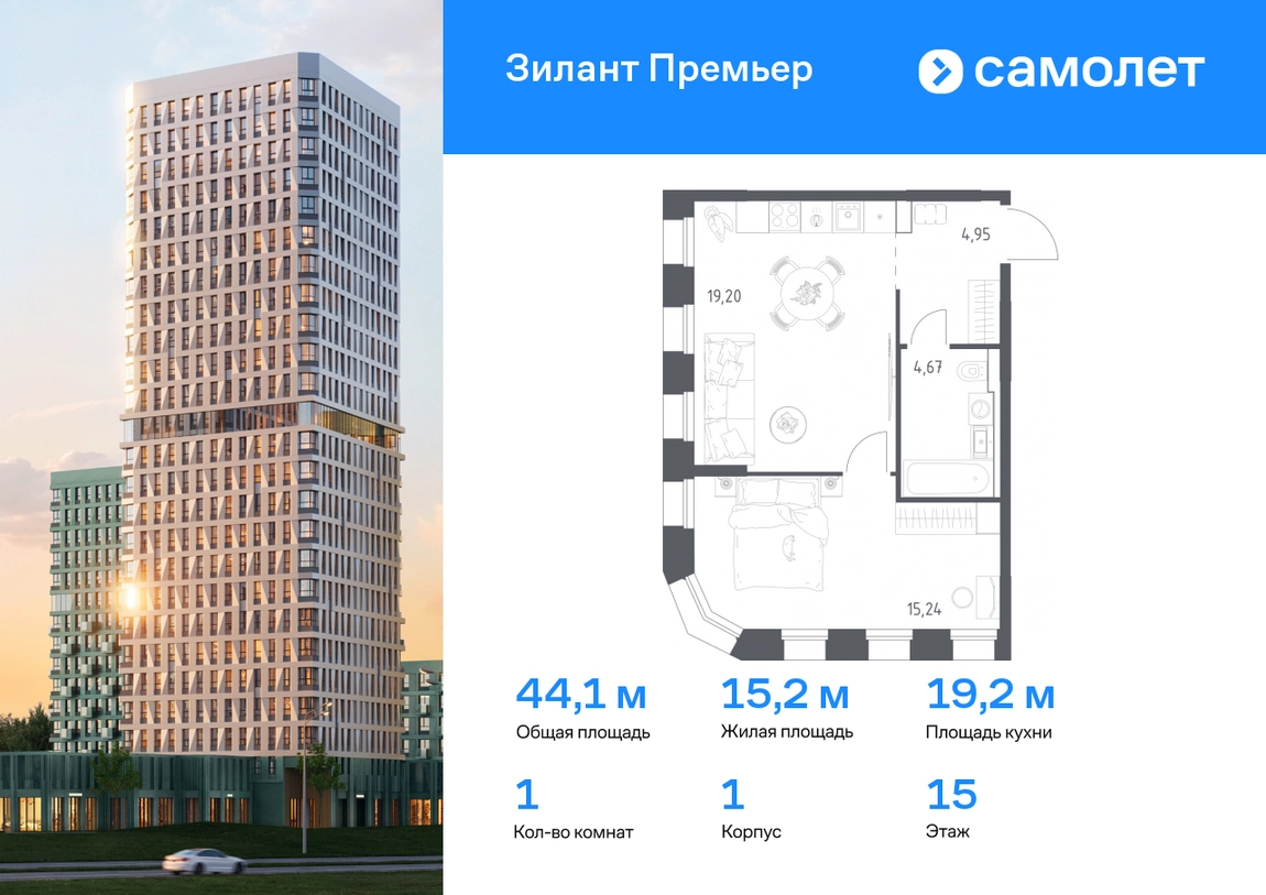 Предлагается 1-комнатная квартира комфорт-класса 44,06 кв.м в корпусе 1 на 15 этаже, в ЖК «Зилант Премьер» Квартира с предчистовой отделкой. Доступность дополнительных опций уточняйте у застройщика. Приобрести квартиру возможно по специальным акциям от застройщика, с текущими условиями акций можно ознакомиться в блоке «Акций». Цена динамическая и может отличаться, уточняйте актуальность у застройщика. Жилой комплекс «Зилант Премьер» расположен в молодом районе города. До кремля — 20 минут на авто. В получасе пешком — метро «Горки». Рядом Горкинско-Ометьевский лес, 3 школы, 2 детских сада и поликлиника, скоро откроется свой детский сад. Дома высотой от 1 до 25 этажей с фасадами, которые оживляют открытые французские балконы. В уютном дворе — детские площадки и воркаут-зона.#yan19-2r1770878#О застройщике