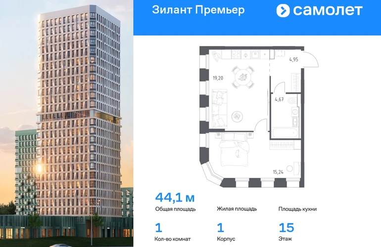 Предлагается 1-комнатная квартира комфорт-класса 44,06 кв.м в корпусе 1 на 15 этаже, в ЖК «Зилант Премьер» Квартира с предчистовой отделкой. Доступность дополнительных опций уточняйте у застройщика. Приобрести квартиру возможно по специальным акциям от застройщика, с текущими условиями акций можно ознакомиться в блоке «Акций». Цена динамическая и может отличаться, уточняйте актуальность у застройщика. Жилой комплекс «Зилант Премьер» расположен в молодом районе города. До кремля — 20 минут на авто. В получасе пешком — метро «Горки». Рядом Горкинско-Ометьевский лес, 3 школы, 2 детских сада и поликлиника, скоро откроется свой детский сад. Дома высотой от 1 до 25 этажей с фасадами, которые оживляют открытые французские балконы. В уютном дворе — детские площадки и воркаут-зона.#yan19-2r1770884#О застройщике