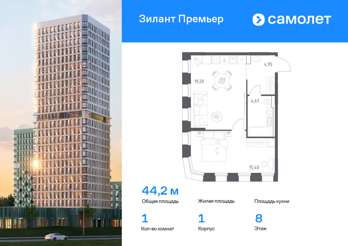 Предлагается 1-комнатная квартира комфорт-класса 44,22 кв.м в корпусе 1 на 8 этаже, в ЖК «Зилант Премьер» Квартира с предчистовой отделкой. Доступность дополнительных опций уточняйте у застройщика. Приобрести квартиру возможно по специальным акциям от застройщика, с текущими условиями акций можно ознакомиться в блоке “Акций”. Цена динамическая и может отличаться, уточняйте актуальность у застройщика. Жилой комплекс «Зилант Премьер» расположен в молодом районе города. До кремля — 20 минут на авто. В получасе пешком — метро «Горки». Рядом Горкинско-Ометьевский лес, 3 школы, 2 детских сада и поликлиника, скоро откроется свой детский сад. Дома высотой от 1 до 25 этажей с фасадами, которые оживляют открытые французские балконы. В уютном дворе — детские площадки и воркаут-зона.#yan19-2r1790641#О застройщике