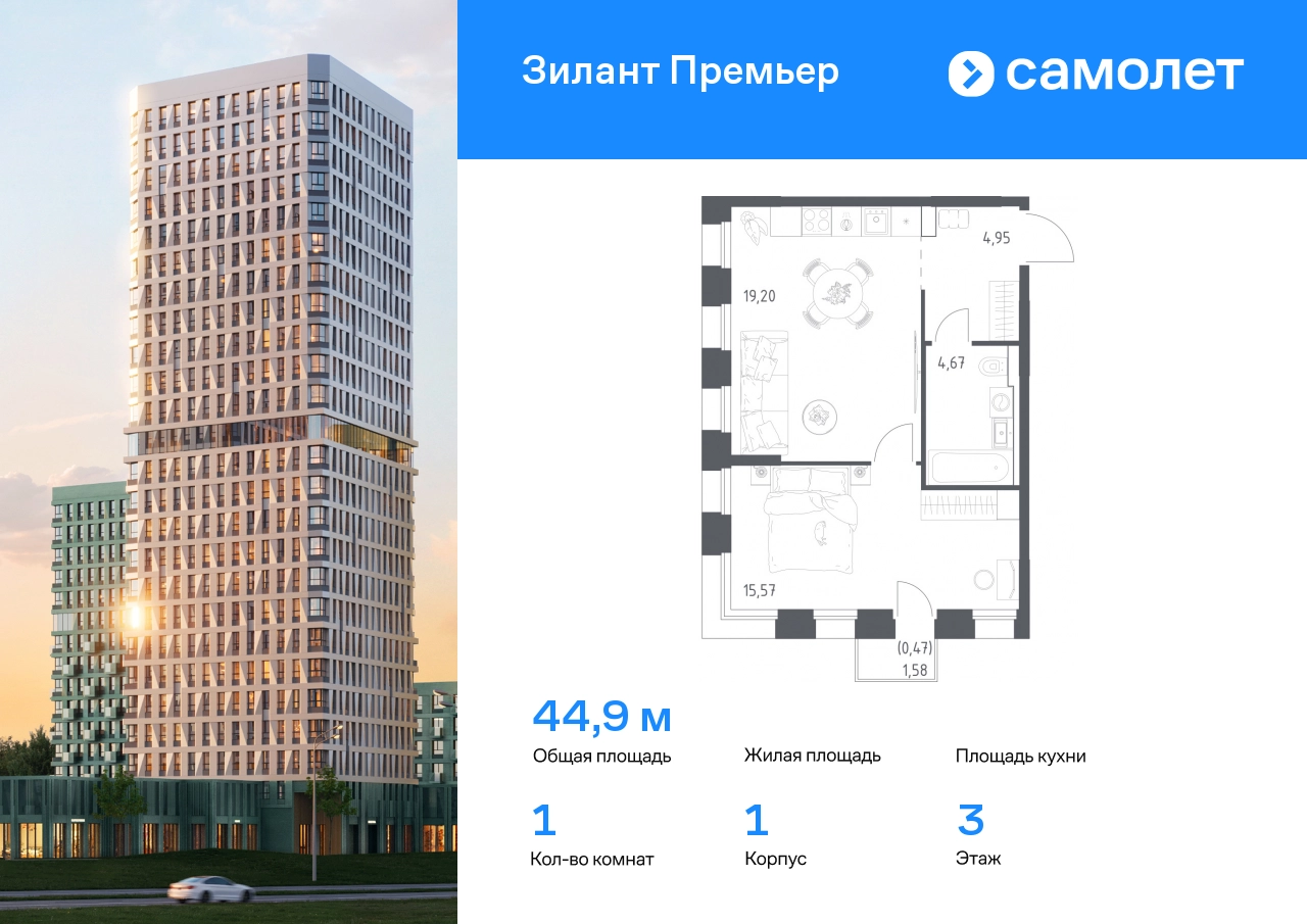 Строим кварталы для жизни с заботой о будущем. Предлагается 1-комнатная квартира комфорт-класса 44,86 кв.м в корпусе 1 на 3 этаже, в ЖК «Зилант Премьер» Квартира с предчистовой отделкой. Доступность дополнительных опций уточняйте у застройщика. Приобрести квартиру возможно по специальным акциям от застройщика, с текущими условиями акций можно ознакомиться в блоке «Акций». Цена динамическая и может отличаться, уточняйте актуальность у застройщика. Жилой комплекс «Зилант Премьер» расположен в молодом районе города. До кремля — 20 минут на авто. В получасе пешком — метро «Горки». Рядом Горкинско-Ометьевский лес, 3 школы, 2 детских сада и поликлиника, скоро откроется свой детский сад. Дома высотой от 1 до 25 этажей с фасадами, которые оживляют открытые французские балконы. В уютном дворе — детские площадки и воркаут-зона.#yan19-2r1791997#О застройщике