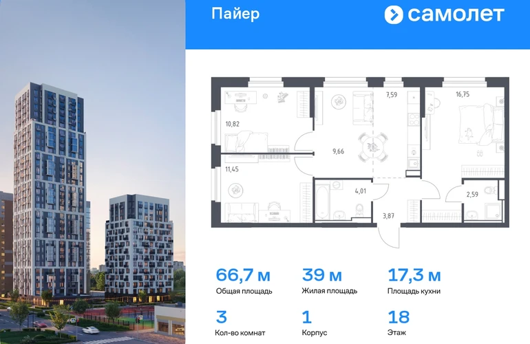 Предлагается 3-комнатная квартира комфорт-класса 66,74 кв.м в корпусе 1 на 18 этаже, в ЖК «Пайер» Квартира с предчистовой отделкой. Доступность дополнительных опций уточняйте у застройщика. Приобрести квартиру возможно по специальным акциям от застройщика, с текущими условиями акций можно ознакомиться в блоке “Акций”. Цена динамическая и может отличаться, уточняйте актуальность у застройщика. В жилом квартале «Пайер» мы сохранили уютную и беззаботную атмосферу. До центра Екатеринбурга — 15 минут на авто. Всего 20 минут прогулки - до большого парка на берегу реки Исеть и Ольховского пруда. Рядом работают детские сады, школа, магазины, пункты выдачи, аптеки и кафе. В приватном зеленом дворе-парке есть спортивная и игровая зона. Лаконичные фасады с открытыми террасами выглядят выразительно. Квартиры с предчистовой отделкой.#yan19-2r1769665#О застройщике