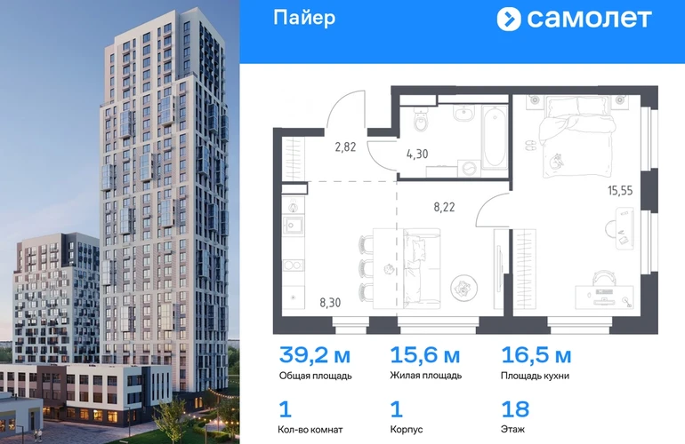 Строим кварталы для жизни с заботой о будущем. Предлагается 1-комнатная квартира комфорт-класса 39,19 кв.м в корпусе 1 на 18 этаже, в ЖК «Пайер» Квартира с предчистовой отделкой. Доступность дополнительных опций уточняйте у застройщика. Приобрести квартиру возможно по специальным акциям от застройщика, с текущими условиями акций можно ознакомиться в блоке «Акций». Цена динамическая и может отличаться, уточняйте актуальность у застройщика. В жилом квартале «Пайер» мы сохранили уютную и беззаботную атмосферу. До центра Екатеринбурга — 15 минут на авто. Всего 20 минут прогулки - до большого парка на берегу реки Исеть и Ольховского пруда. Рядом работают детские сады, школа, магазины, пункты выдачи, аптеки и кафе. В приватном зеленом дворе-парке есть спортивная и игровая зона. Лаконичные фасады с открытыми террасами выглядят выразительно. Квартиры с предчистовой отделкой.#yan19-2r1769668#О застройщике