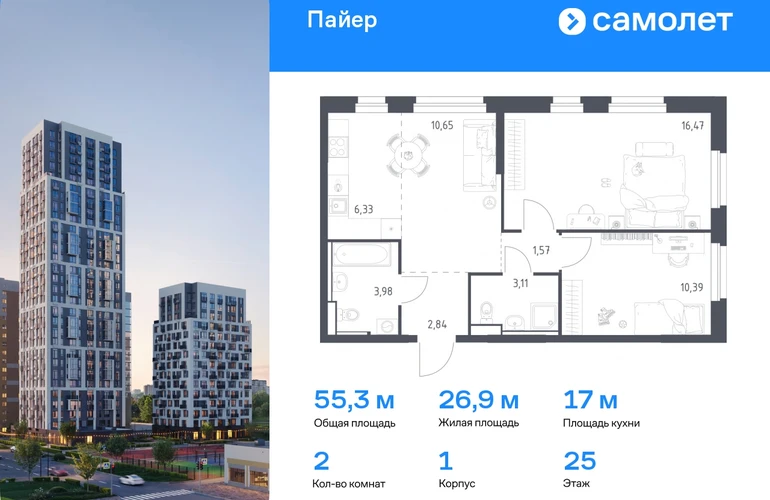 Строим кварталы для жизни с заботой о будущем. Предлагается 2-комнатная квартира комфорт-класса 55,34 кв.м в корпусе 1 на 25 этаже, в ЖК «Пайер» Квартира с предчистовой отделкой. Доступность дополнительных опций уточняйте у застройщика. Приобрести квартиру возможно по специальным акциям от застройщика, с текущими условиями акций можно ознакомиться в блоке «Акций». Цена динамическая и может отличаться, уточняйте актуальность у застройщика. В жилом квартале «Пайер» мы сохранили уютную и беззаботную атмосферу. До центра Екатеринбурга — 15 минут на авто. Всего 20 минут прогулки - до большого парка на берегу реки Исеть и Ольховского пруда. Рядом работают детские сады, школа, магазины, пункты выдачи, аптеки и кафе. В приватном зеленом дворе-парке есть спортивная и игровая зона. Лаконичные фасады с открытыми террасами выглядят выразительно. Квартиры с предчистовой отделкой.#yan19-2r1769673#О застройщике