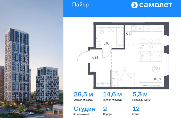 Предлагается квартира студия комфорт-класса 28,48 кв.м в корпусе 2 на 12 этаже, в ЖК «Пайер» Квартира с предчистовой отделкой. Доступность дополнительных опций уточняйте у застройщика. Приобрести квартиру возможно по специальным акциям от застройщика, с текущими условиями акций можно ознакомиться в блоке “Акций”. Цена динамическая и может отличаться, уточняйте актуальность у застройщика. В жилом квартале «Пайер» мы сохранили уютную и беззаботную атмосферу. До центра Екатеринбурга — 15 минут на авто. Всего 20 минут прогулки - до большого парка на берегу реки Исеть и Ольховского пруда. Рядом работают детские сады, школа, магазины, пункты выдачи, аптеки и кафе. В приватном зеленом дворе-парке есть спортивная и игровая зона. Лаконичные фасады с открытыми террасами выглядят выразительно. Квартиры с предчистовой отделкой.#yan19-2r1769689#О застройщике