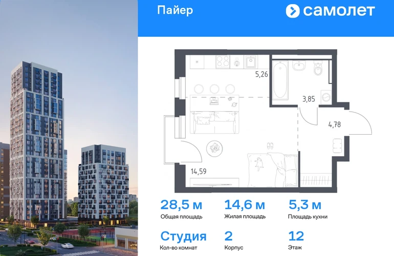 Предлагается квартира студия комфорт-класса 28,48 кв.м в корпусе 2 на 12 этаже, в ЖК «Пайер» Квартира с предчистовой отделкой. Доступность дополнительных опций уточняйте у застройщика. Приобрести квартиру возможно по специальным акциям от застройщика, с текущими условиями акций можно ознакомиться в блоке “Акций”. Цена динамическая и может отличаться, уточняйте актуальность у застройщика. В жилом квартале «Пайер» мы сохранили уютную и беззаботную атмосферу. До центра Екатеринбурга — 15 минут на авто. Всего 20 минут прогулки - до большого парка на берегу реки Исеть и Ольховского пруда. Рядом работают детские сады, школа, магазины, пункты выдачи, аптеки и кафе. В приватном зеленом дворе-парке есть спортивная и игровая зона. Лаконичные фасады с открытыми террасами выглядят выразительно. Квартиры с предчистовой отделкой.#yan19-2r1769691#О застройщике