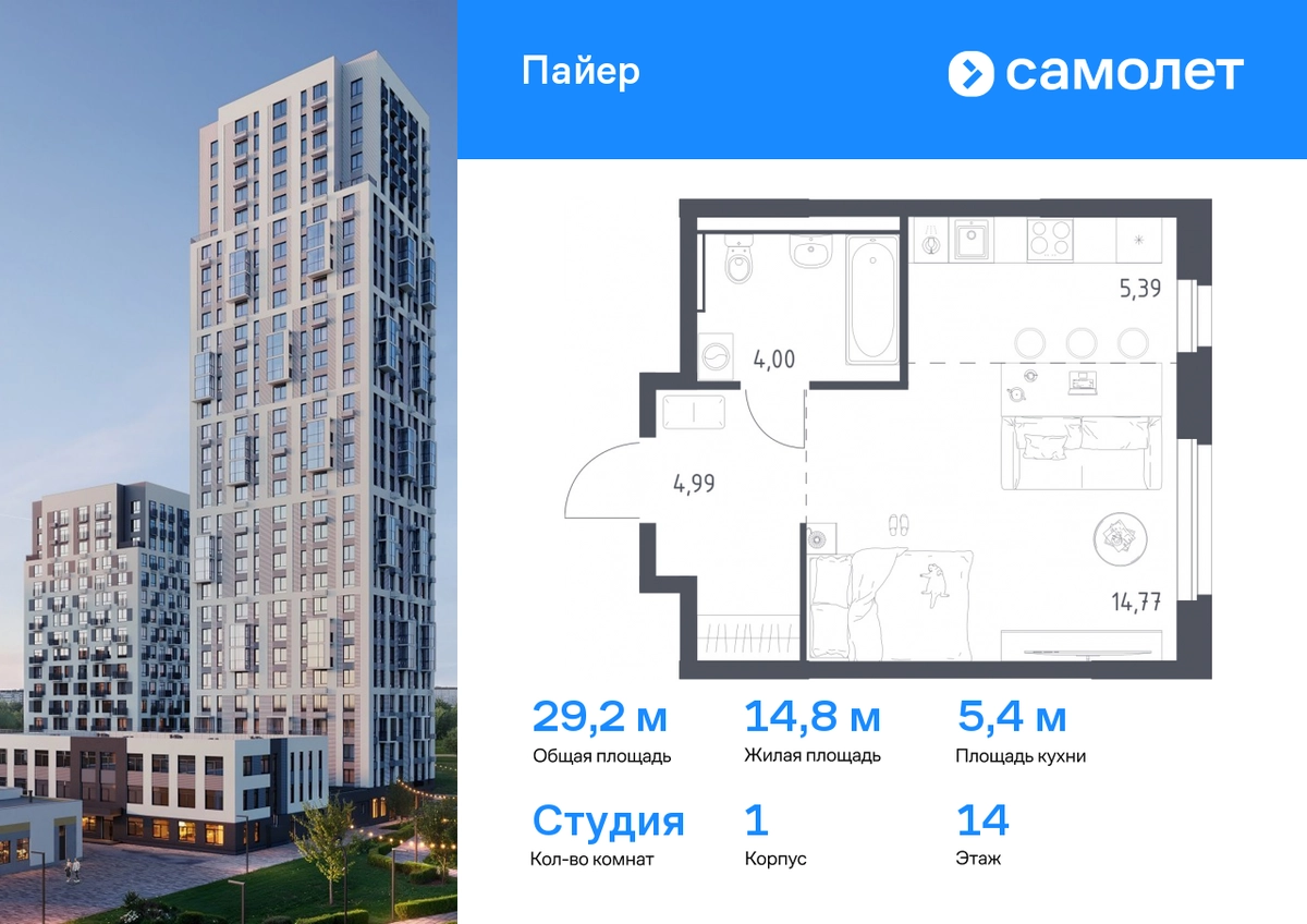 Строим кварталы для жизни с заботой о будущем. Предлагается квартира студия комфорт-класса 29,15 кв.м в корпусе 1 на 14 этаже, в ЖК «Пайер» Квартира с предчистовой отделкой. Доступность дополнительных опций уточняйте у застройщика. Приобрести квартиру возможно по специальным акциям от застройщика, с текущими условиями акций можно ознакомиться в блоке «Акций». Цена динамическая и может отличаться, уточняйте актуальность у застройщика. В жилом квартале «Пайер» мы сохранили уютную и беззаботную атмосферу. До центра Екатеринбурга — 15 минут на авто. Всего 20 минут прогулки - до большого парка на берегу реки Исеть и Ольховского пруда. Рядом работают детские сады, школа, магазины, пункты выдачи, аптеки и кафе. В приватном зеленом дворе-парке есть спортивная и игровая зона. Лаконичные фасады с открытыми террасами выглядят выразительно. Квартиры с предчистовой отделкой.#yan19-2r1770097#О застройщике
