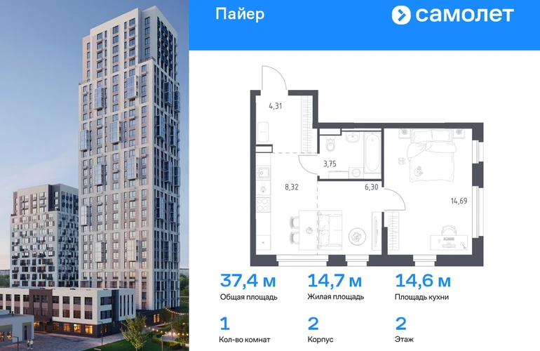 Предлагается 1-комнатная квартира комфорт-класса 37,37 кв.м в корпусе 2 на 2 этаже, в ЖК «Пайер» Квартира с предчистовой отделкой. Доступность дополнительных опций уточняйте у застройщика. Приобрести квартиру возможно по специальным акциям от застройщика, с текущими условиями акций можно ознакомиться в блоке “Акций”. Цена динамическая и может отличаться, уточняйте актуальность у застройщика. В жилом квартале «Пайер» мы сохранили уютную и беззаботную атмосферу. До центра Екатеринбурга — 15 минут на авто. Всего 20 минут прогулки - до большого парка на берегу реки Исеть и Ольховского пруда. Рядом работают детские сады, школа, магазины, пункты выдачи, аптеки и кафе. В приватном зеленом дворе-парке есть спортивная и игровая зона. Лаконичные фасады с открытыми террасами выглядят выразительно. Квартиры с предчистовой отделкой.#yan19-2r1770104#О застройщике