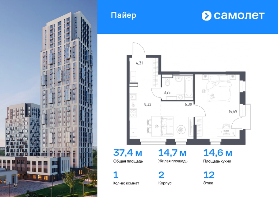 Предлагается 1-комнатная квартира комфорт-класса 37,37 кв.м в корпусе 2 на 12 этаже, в ЖК «Пайер» Квартира с предчистовой отделкой. Доступность дополнительных опций уточняйте у застройщика. Приобрести квартиру возможно по специальным акциям от застройщика, с текущими условиями акций можно ознакомиться в блоке “Акций”. Цена динамическая и может отличаться, уточняйте актуальность у застройщика. В жилом квартале «Пайер» мы сохранили уютную и беззаботную атмосферу. До центра Екатеринбурга — 15 минут на авто. Всего 20 минут прогулки - до большого парка на берегу реки Исеть и Ольховского пруда. Рядом работают детские сады, школа, магазины, пункты выдачи, аптеки и кафе. В приватном зеленом дворе-парке есть спортивная и игровая зона. Лаконичные фасады с открытыми террасами выглядят выразительно. Квартиры с предчистовой отделкой.#yan19-2r1770112#О застройщике