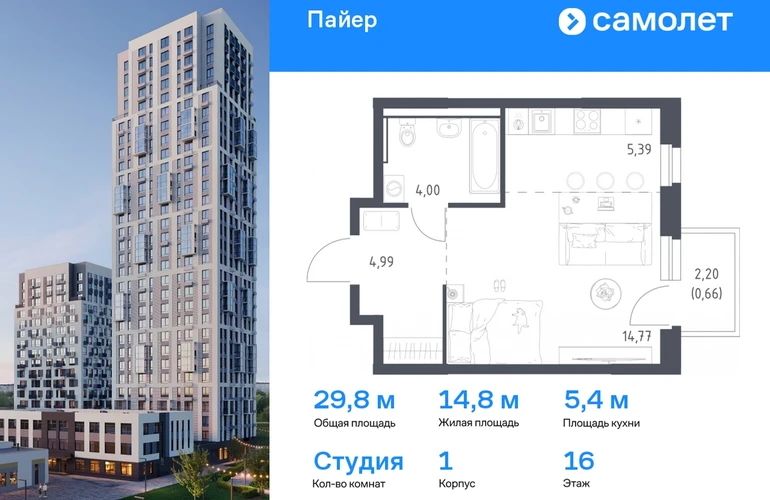 Предлагается квартира студия комфорт-класса 29,81 кв.м в корпусе 1 на 16 этаже, в ЖК «Пайер» Квартира с предчистовой отделкой. Доступность дополнительных опций уточняйте у застройщика. Приобрести квартиру возможно по специальным акциям от застройщика, с текущими условиями акций можно ознакомиться в блоке “Акций”. Цена динамическая и может отличаться, уточняйте актуальность у застройщика. В жилом квартале «Пайер» мы сохранили уютную и беззаботную атмосферу. До центра Екатеринбурга — 15 минут на авто. Всего 20 минут прогулки - до большого парка на берегу реки Исеть и Ольховского пруда. Рядом работают детские сады, школа, магазины, пункты выдачи, аптеки и кафе. В приватном зеленом дворе-парке есть спортивная и игровая зона. Лаконичные фасады с открытыми террасами выглядят выразительно. Квартиры с предчистовой отделкой.#yan19-2r1774414#О застройщике