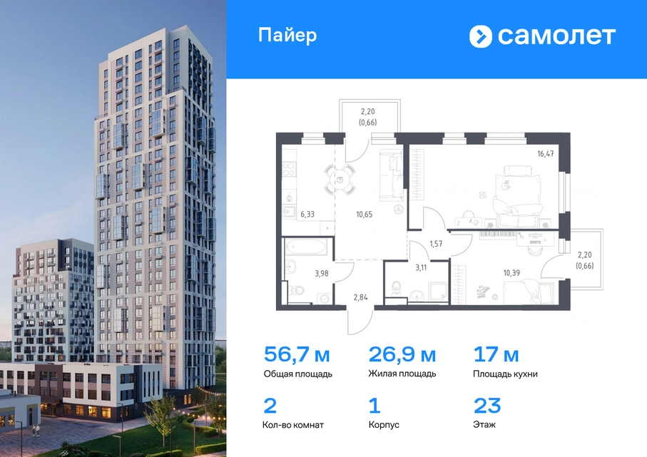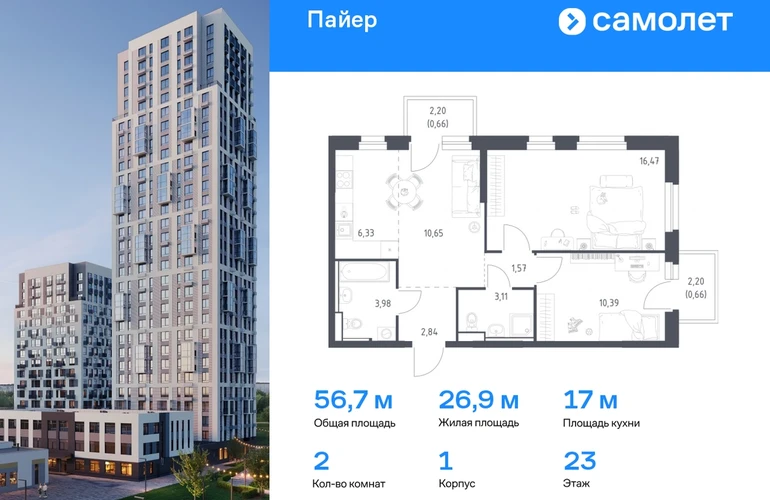 Строим кварталы для жизни с заботой о будущем. Предлагается 2-комнатная квартира комфорт-класса 56,66 кв.м в корпусе 1 на 23 этаже, в ЖК «Пайер» Квартира с предчистовой отделкой. Доступность дополнительных опций уточняйте у застройщика. Приобрести квартиру возможно по специальным акциям от застройщика, с текущими условиями акций можно ознакомиться в блоке «Акций». Цена динамическая и может отличаться, уточняйте актуальность у застройщика. В жилом квартале «Пайер» мы сохранили уютную и беззаботную атмосферу. До центра Екатеринбурга — 15 минут на авто. Всего 20 минут прогулки - до большого парка на берегу реки Исеть и Ольховского пруда. Рядом работают детские сады, школа, магазины, пункты выдачи, аптеки и кафе. В приватном зеленом дворе-парке есть спортивная и игровая зона. Лаконичные фасады с открытыми террасами выглядят выразительно. Квартиры с предчистовой отделкой.#yan19-2r1774424#О застройщике
